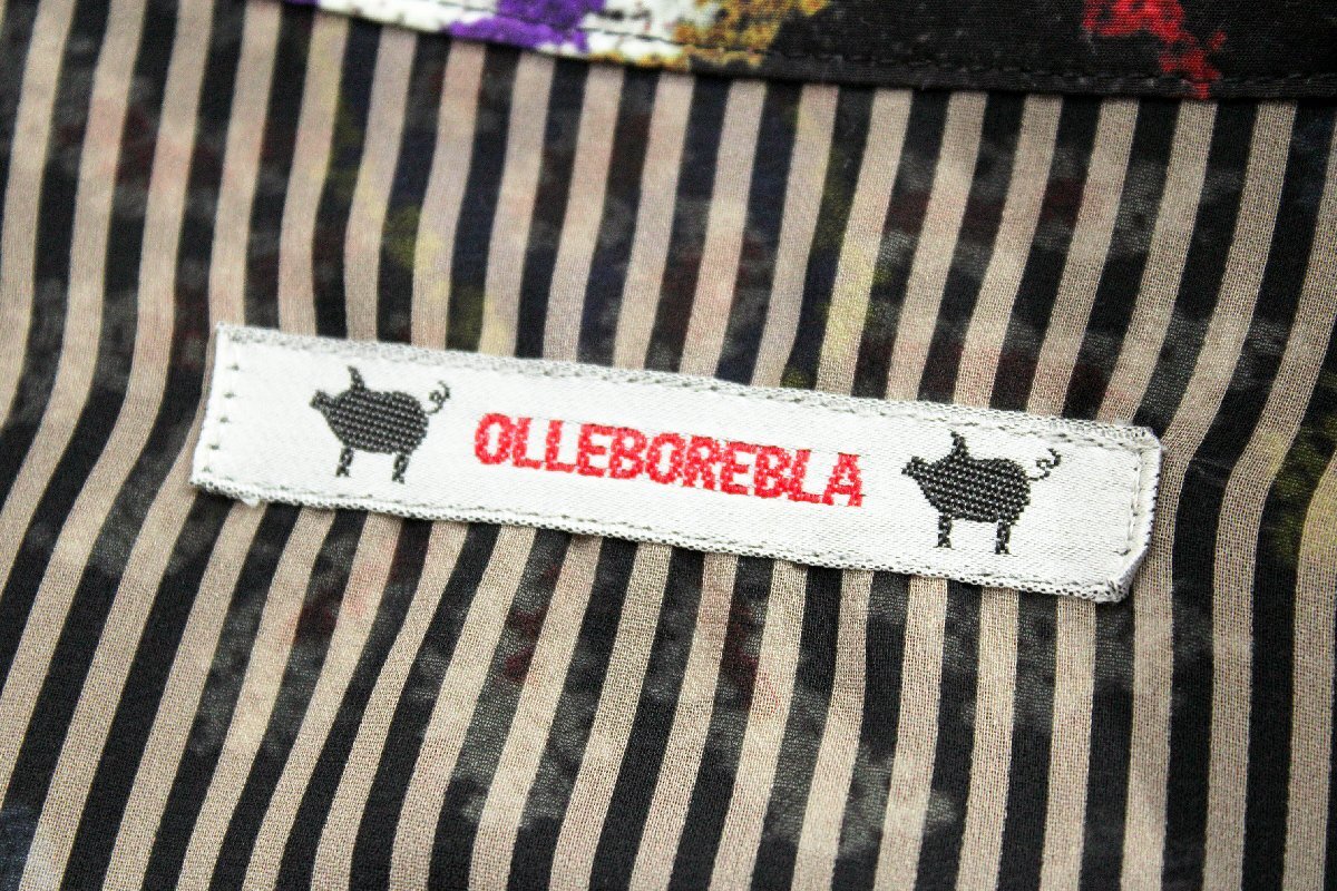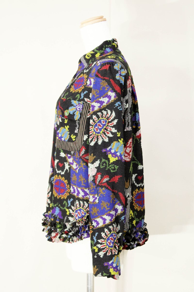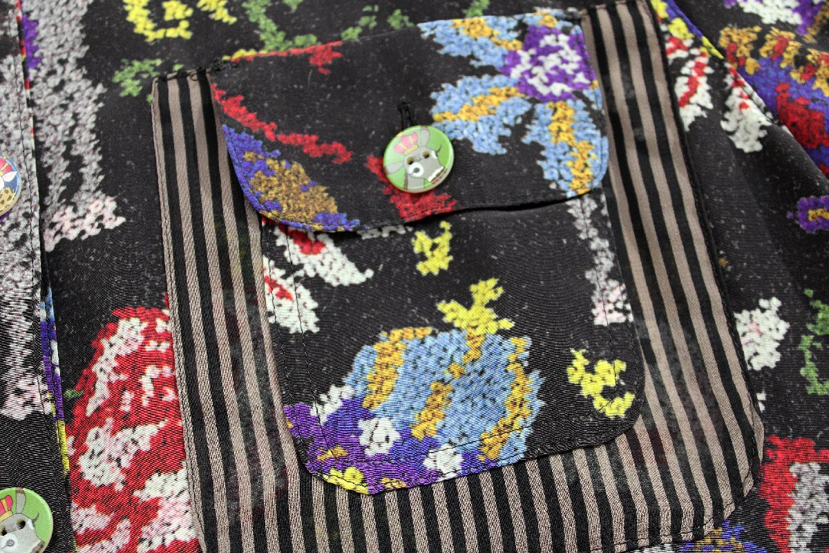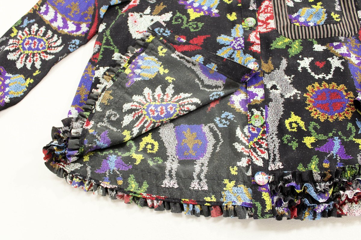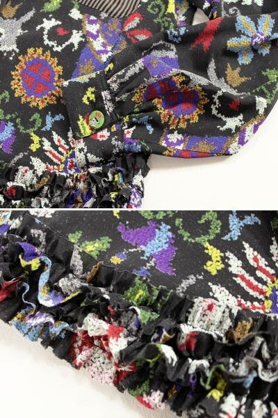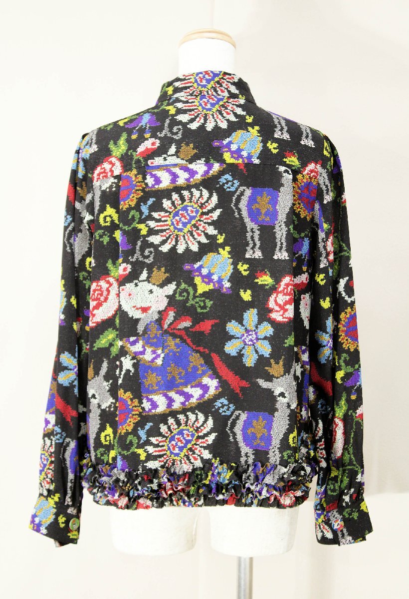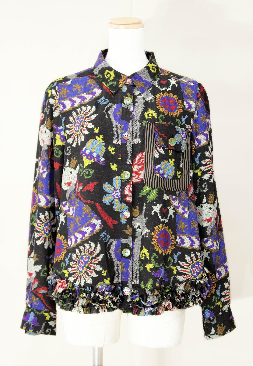☆美品☆アルベロベロ/フリル使いブタさん創作柄プリント長袖シャツブラウス:黒系yx956