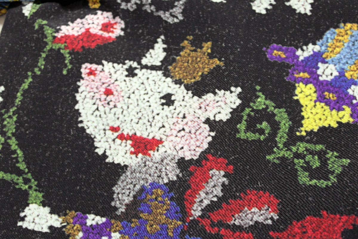 ブタさんやお花の編み柄をインクジェットプリントであしらわれています。
