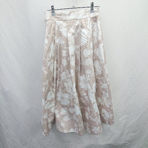 ◇ ⊂ ジュリアフラワー エレガント系 花柄 ロング フレア タックフレアスカート サイズF ベージュ系 レディース E