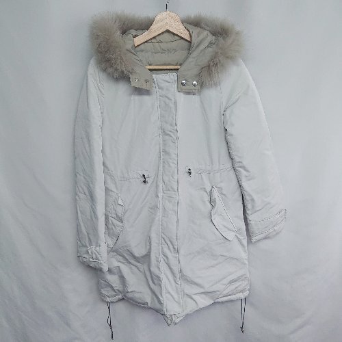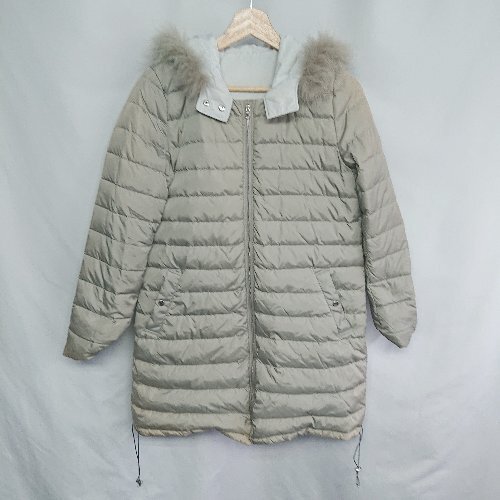 ◇ ⊂ SHIPS シップス ファー ロング丈 シンプル 長袖 ダウン ジャケット コート サイズ36 グレー系 レディース E