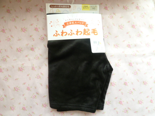 ★新品★しっかり厚地裏起毛★三分丈スパッツ★サイズ140★黒★ふわふわ起毛★キッズ 女児通学にも♪小学生