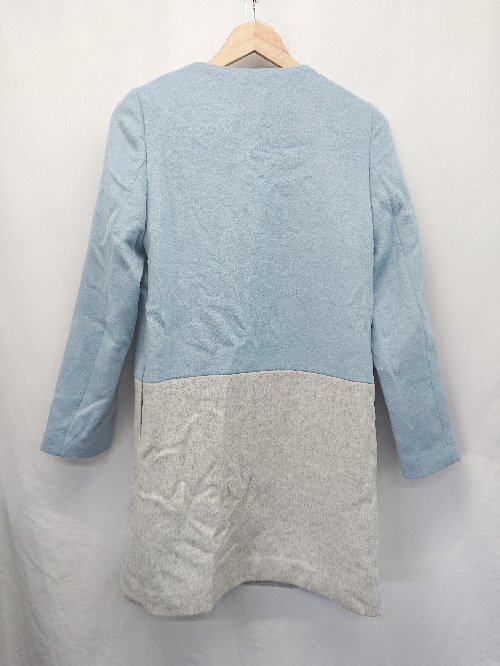 ■ ⊇ NOLLEY'S Light ノーリーズ 長袖 ノーカラー コート サイズ38 ブルー ライトグレー レディース E