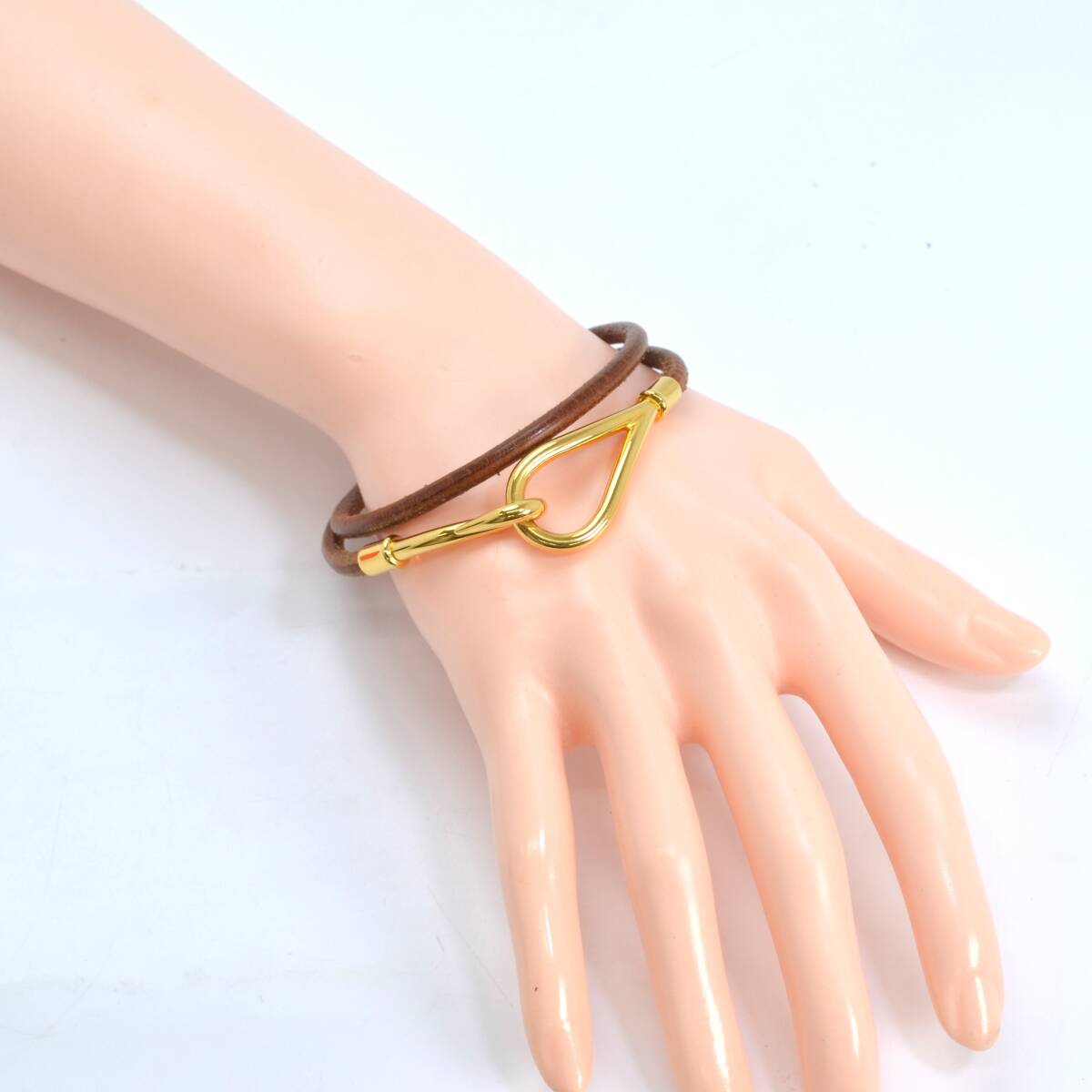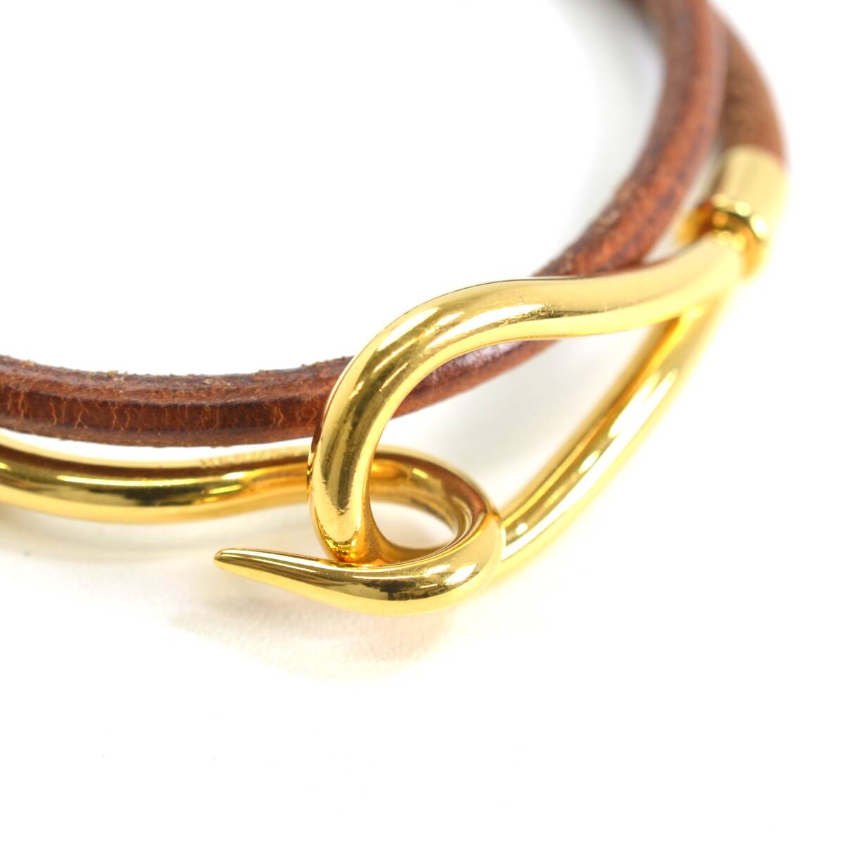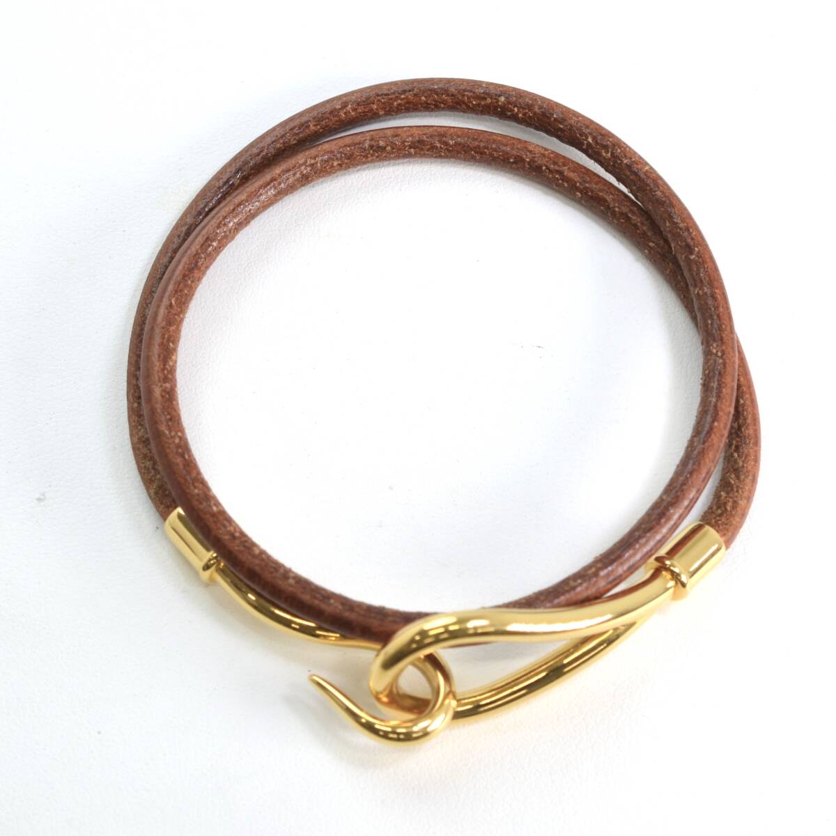 H.Rp 1円スタート HERMES エルメス 2連 ジャンボ ブレスレット フックブレス バングル アクセサリー レザー GP ブラウン ゴールド