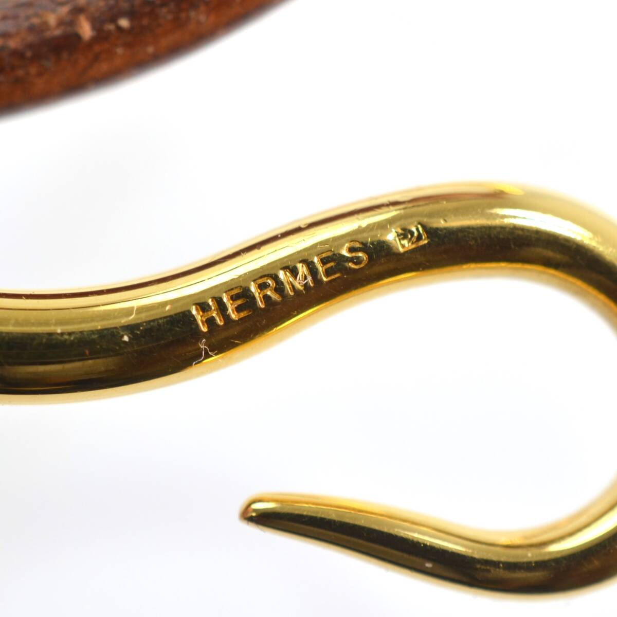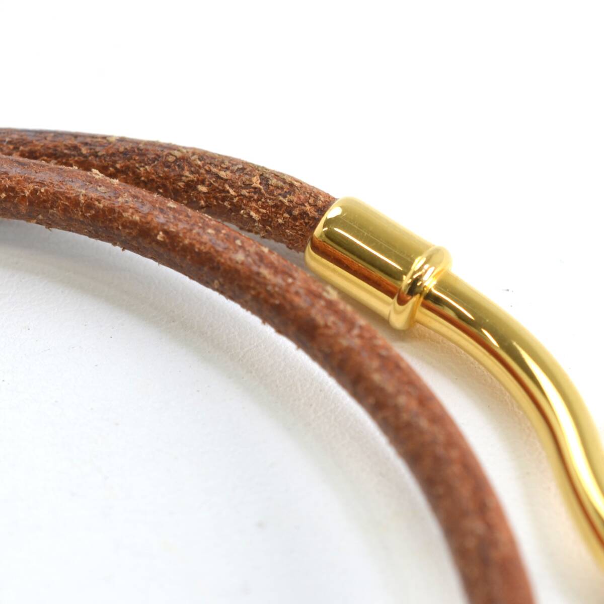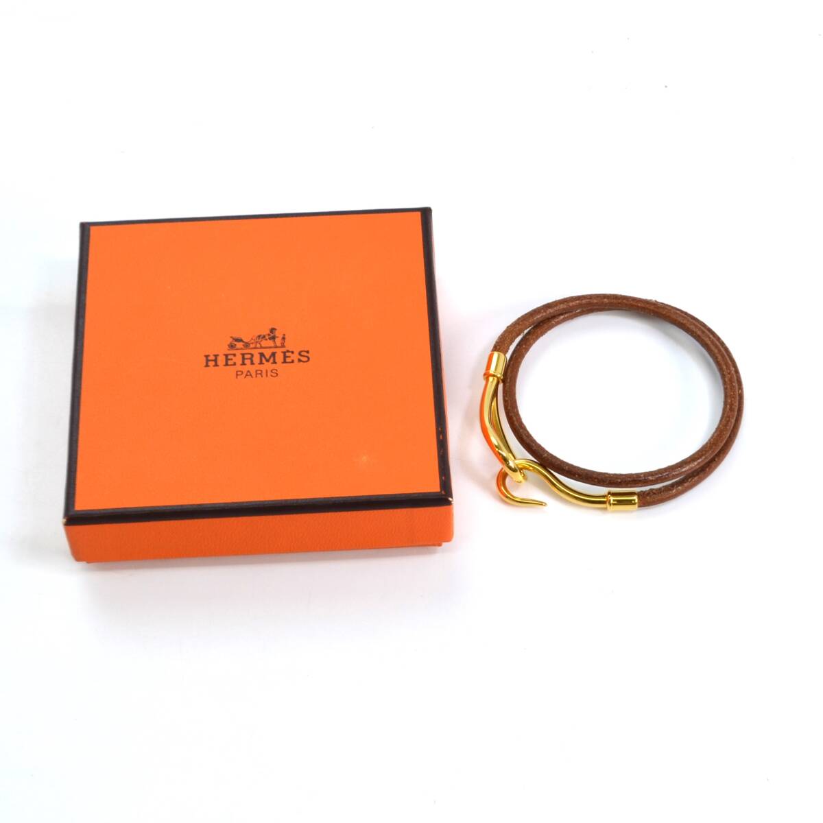 H.Rp 1円スタート HERMES エルメス 2連 ジャンボ ブレスレット フックブレス バングル アクセサリー レザー GP ブラウン ゴールド