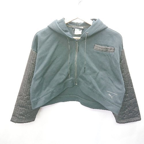 ◇ PUMA プーマ EVO ショート丈 長袖 パーカー サイズUS XS ブラック レディース E