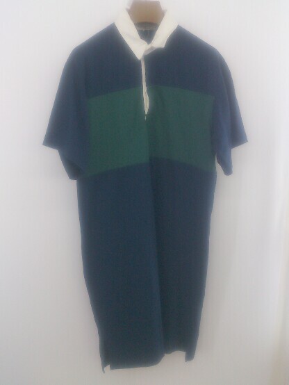 ◇ JEANASIS ジーナシス 半袖 膝下丈 ポロシャツ ワンピース サイズF ネイビー グリーン系 レディース P