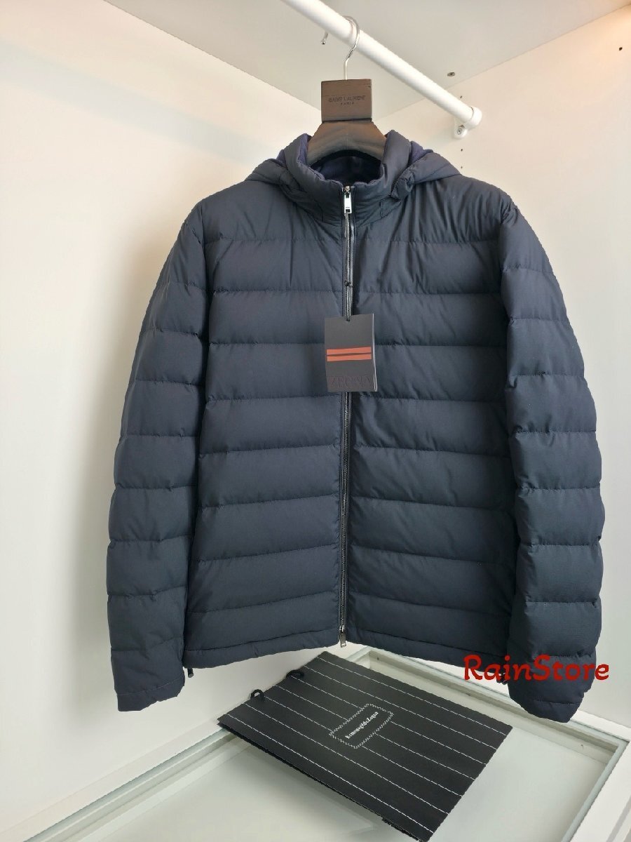 Ermenegildo Zegna エルメネジルド ゼニア メンズダウンジャケット ネイビー 2XLサイズ ブルゾン アウター ダウンコート フード付 冬物