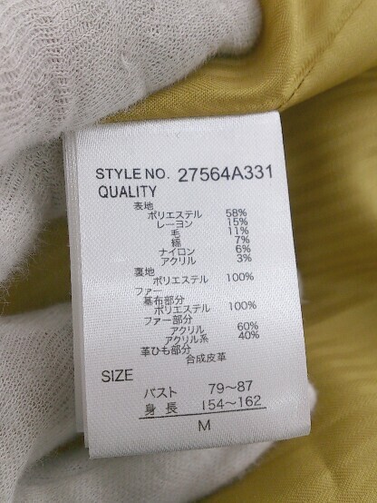 ◇ merlot メルロー フェイクファー 長袖 ダッフル コート サイズM マスタード レディース E