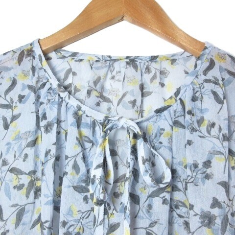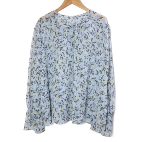 ナチュラルビューティー 美品 21SS 大きいサイズ キャンディスリーブブラウス フラワープリント プルオーバー 長袖 花柄 楊柳 17