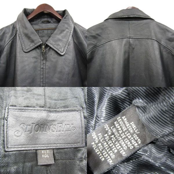 本革 サイズ XLT ST.JOHN’SBAY レザー ジャケット シングル ライダース 革ジャン ブラック セントジョーンズベイ 古着 ビンテージ 5D0401