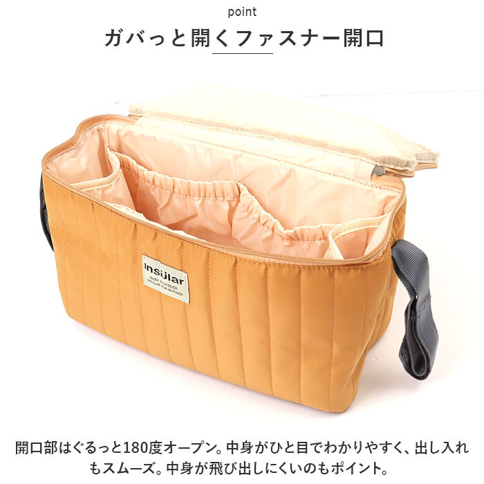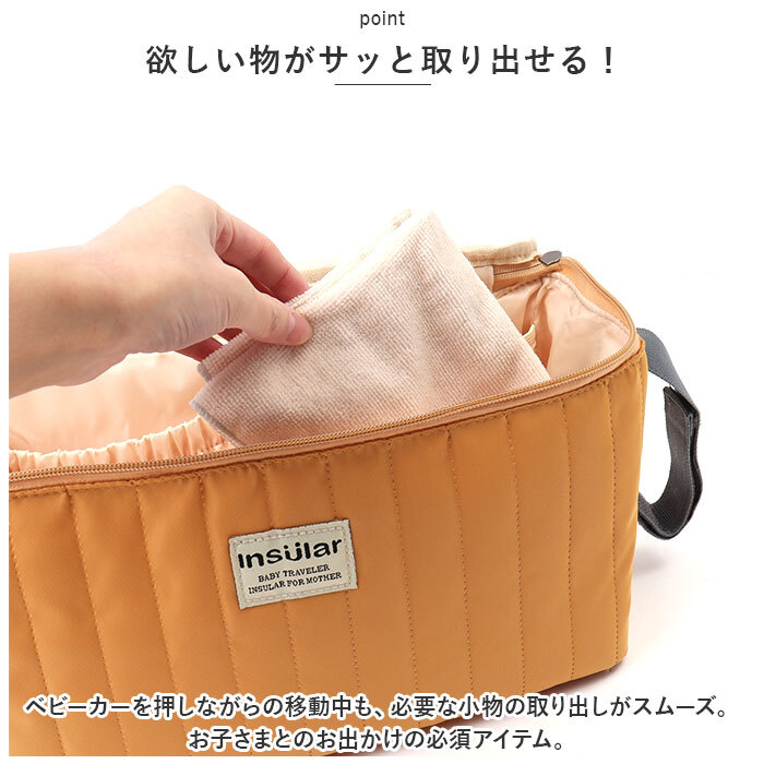 | 商品説明 | ・・赤ちゃんのケアグッズをひとまとめに!ベビーカーに吊り下げることができて、お出掛けに便利な「ベビーカーバッグ」が新登場。 ・【欲しい物がサッと取り出せる!】 ・ベビーカーを押しながらの移動中も、必要な小物の取り出しがスムーズ。お子さまとのお出かけの必須アイテム。 ・【ベビーカーに取り付け可能】 ・両サイドの面ファスナー式ベルトを使って、ベビーカーにラクラク取り付け。持ち運びしやすい、軽量でソフトな質感。 ・【ガバっと開くファスナー開口】 ・開口部はぐるっと180度オープン。中身がひと目でわかりやすく、出し入れもスムーズ。中身が飛び出しにくいのもポイント。 ・【すっきり整理整頓】 ・内側はマチを広めに設け、おむつやおしり拭き、お食事グッズなどをひとまとめ。 ・【サッと取り出せる内ポケット】 ・内側を囲むように配置された6個のポケット。小物や哺乳瓶などのボトル類も、すぐに取り出しOK。 ・【うれしい撥水性をプラス】 ・サラッとした素材に、汚れや水をはじく撥水加工済み。お手入れも拭き取るだけ。(※完全防水ではありません。) ・【使い方をアレンジ】 ・ベビーカーだけでなく、ベビーベッドや車のヘッドレストなどにも取り付けできるから、色んなシーンで重宝。 ・【お気に入りをチョイス】 ・パパ・ママが持ちやすい、シンプルな無地カラー。ステッチデザインやフロントのロゴタグがアクセント。 ・【ポケット仕様】 ・内側:ギャザーポケット×4、ボトルポケット×2 |