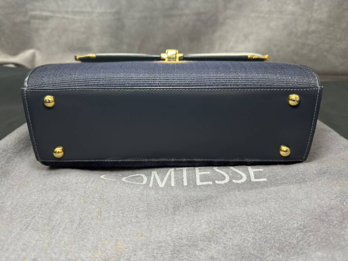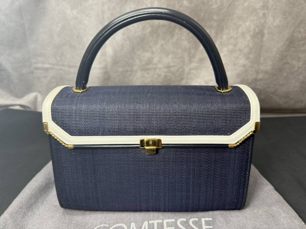 中古品 COMTESSE コンテス ホースヘア ワンハンドバッグ ハンドバッグ レディース ネイビー系