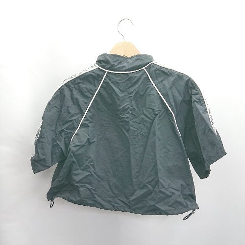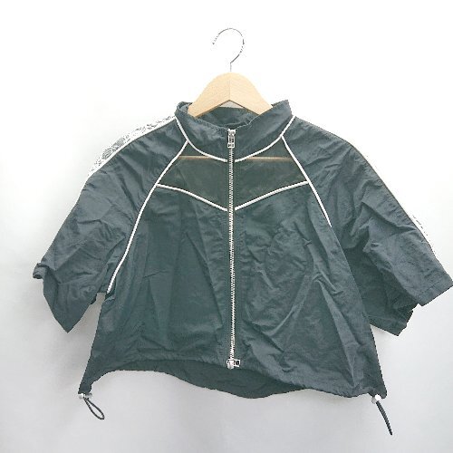 ◇ ⊂ Heather レースライン入り ショート丈 半袖 ナイロンジャケット サイズF ブラック ホワイト レディース E
