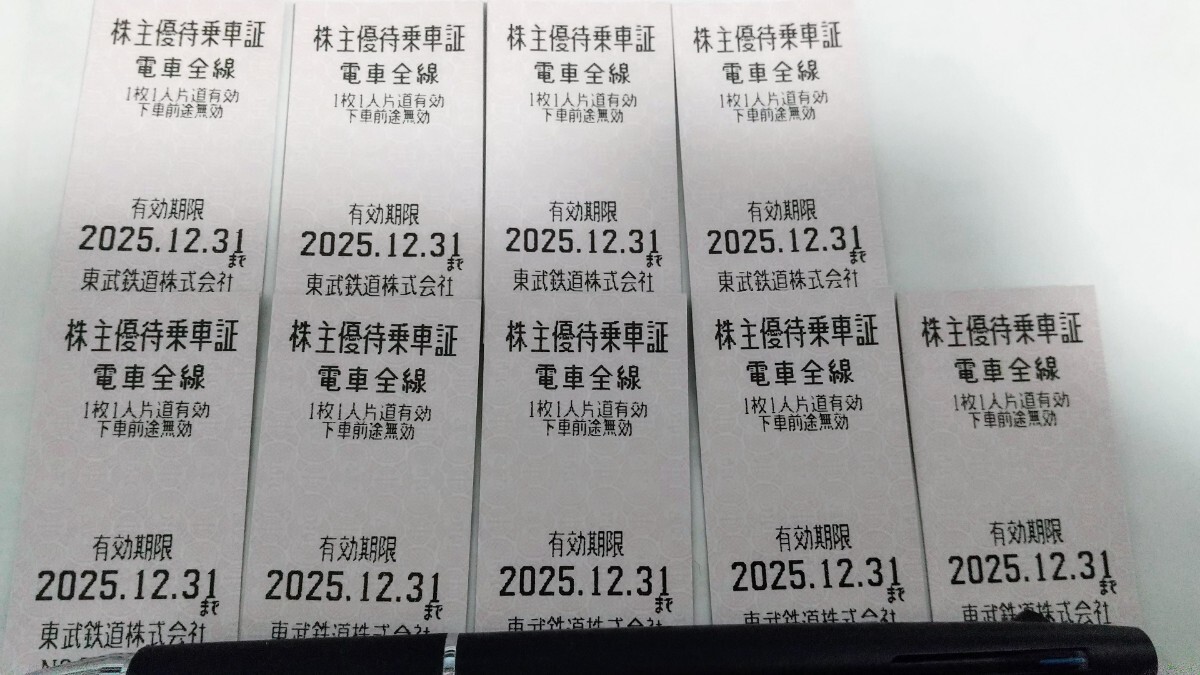 9枚 東武鉄道 株主優待 乗車証 乗車券 有効期限 2025年12月31日 匿名配送 送料無料