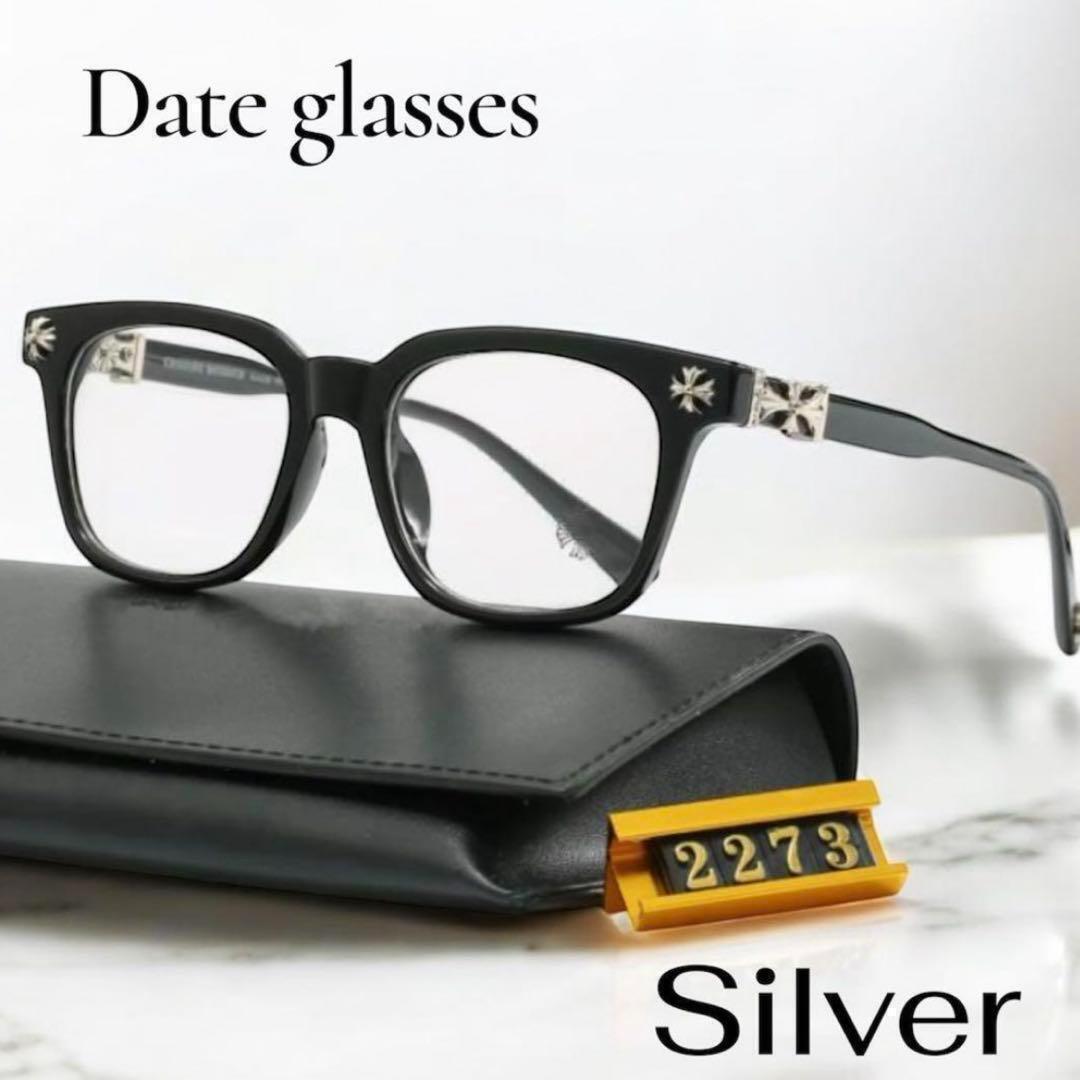伊達メガネ黒縁 シルバー 十字 ジェントルモンスター クロムハーツ くろぶち かっこいい