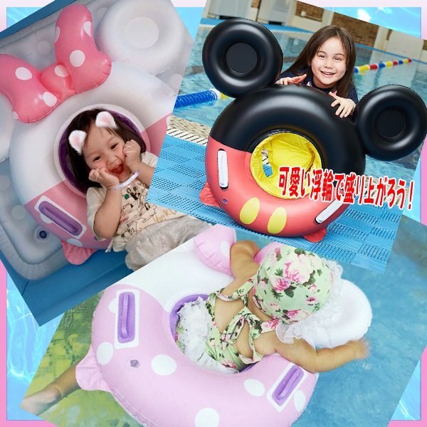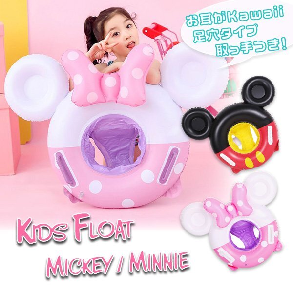 カワイイおミミカラーフロート 足入れ付き浮輪 ミッキーマウス ミニーマウス 持ち手 子供赤ちゃん浮き輪 ベビー プール ミッキー ミニー 海