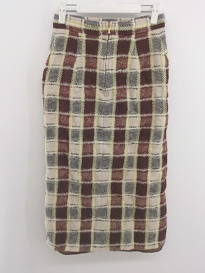 ◇ SLOBE IENA バックジップ ロング タイト ナロー スカート サイズ36 レッド ホワイト系 マルチ レディース E