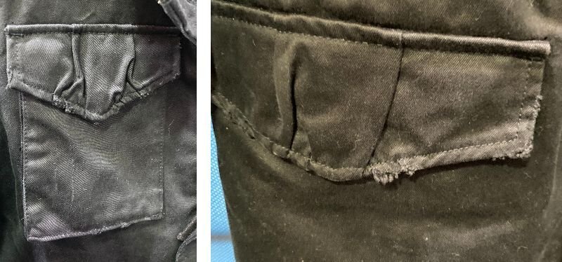 当店は非専門店の為、破れの補修といった明らかに破損と判断されるような部分を除き、裾上げなどのリメイクの有無や細かなデザインの差異などの判断はできません。