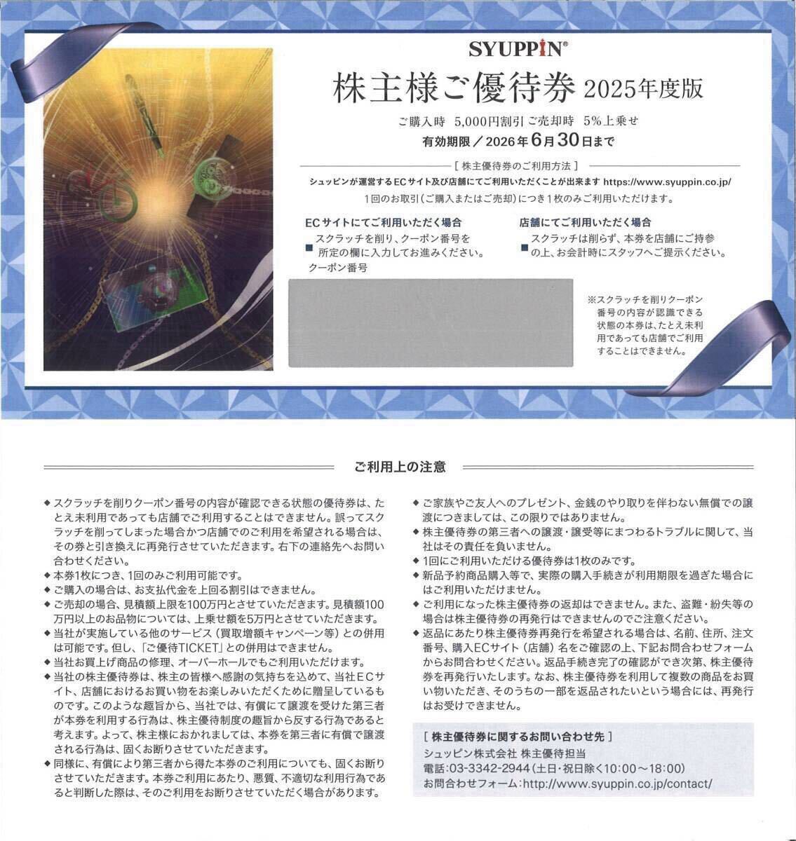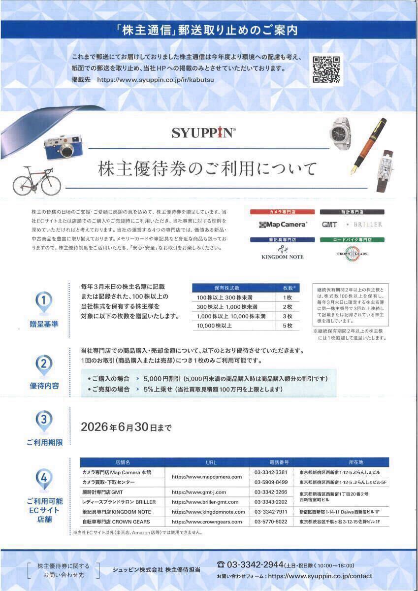 最新の シュッピン 株主優待券 ×10枚 の出品になります。