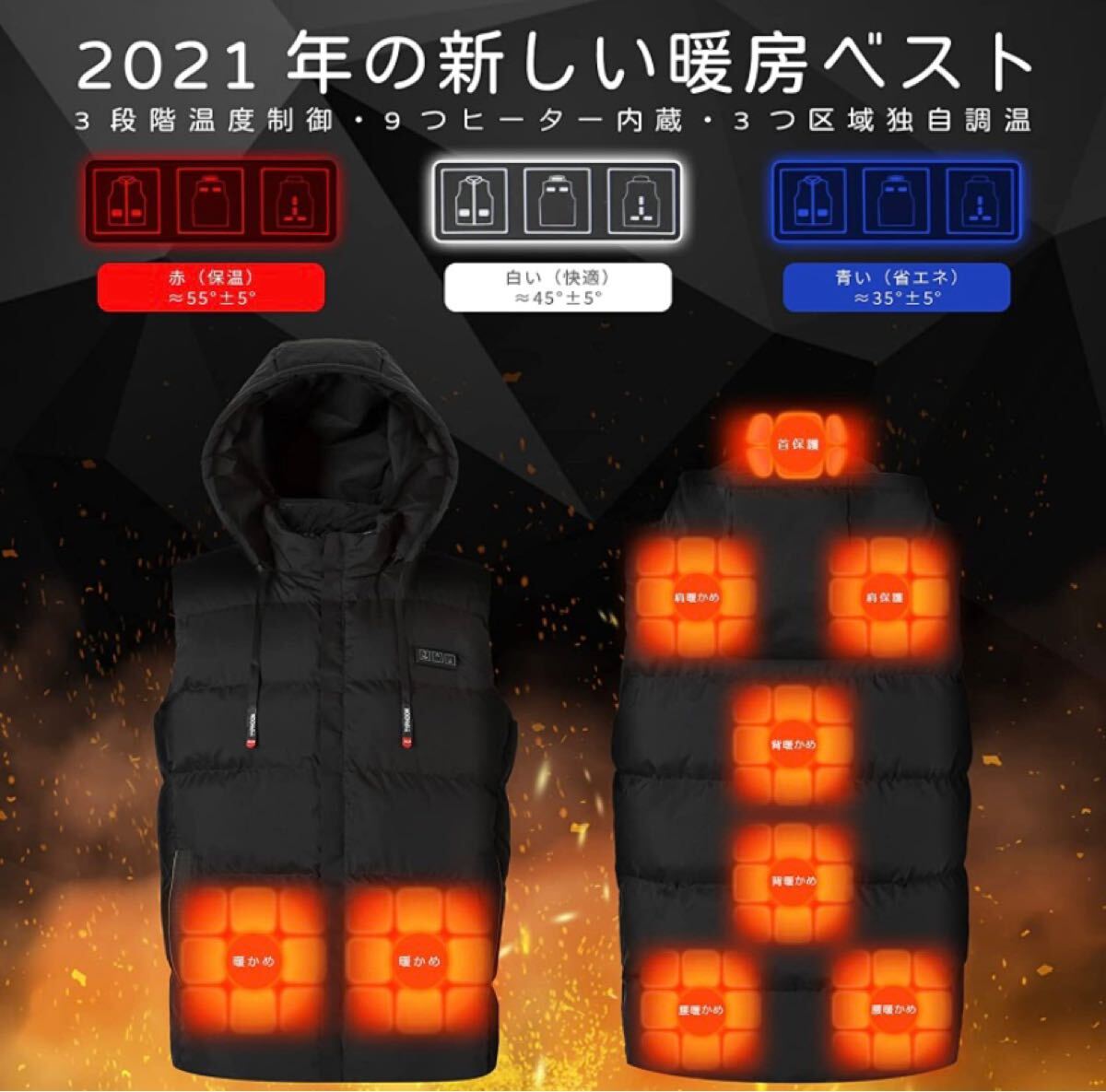 USB充電式 急速発熱 保温防寒対策 秋冬用 9箇所発熱 独立温度設定 3段階温度制御 超軽量 臭くない 水洗い防寒ベスト