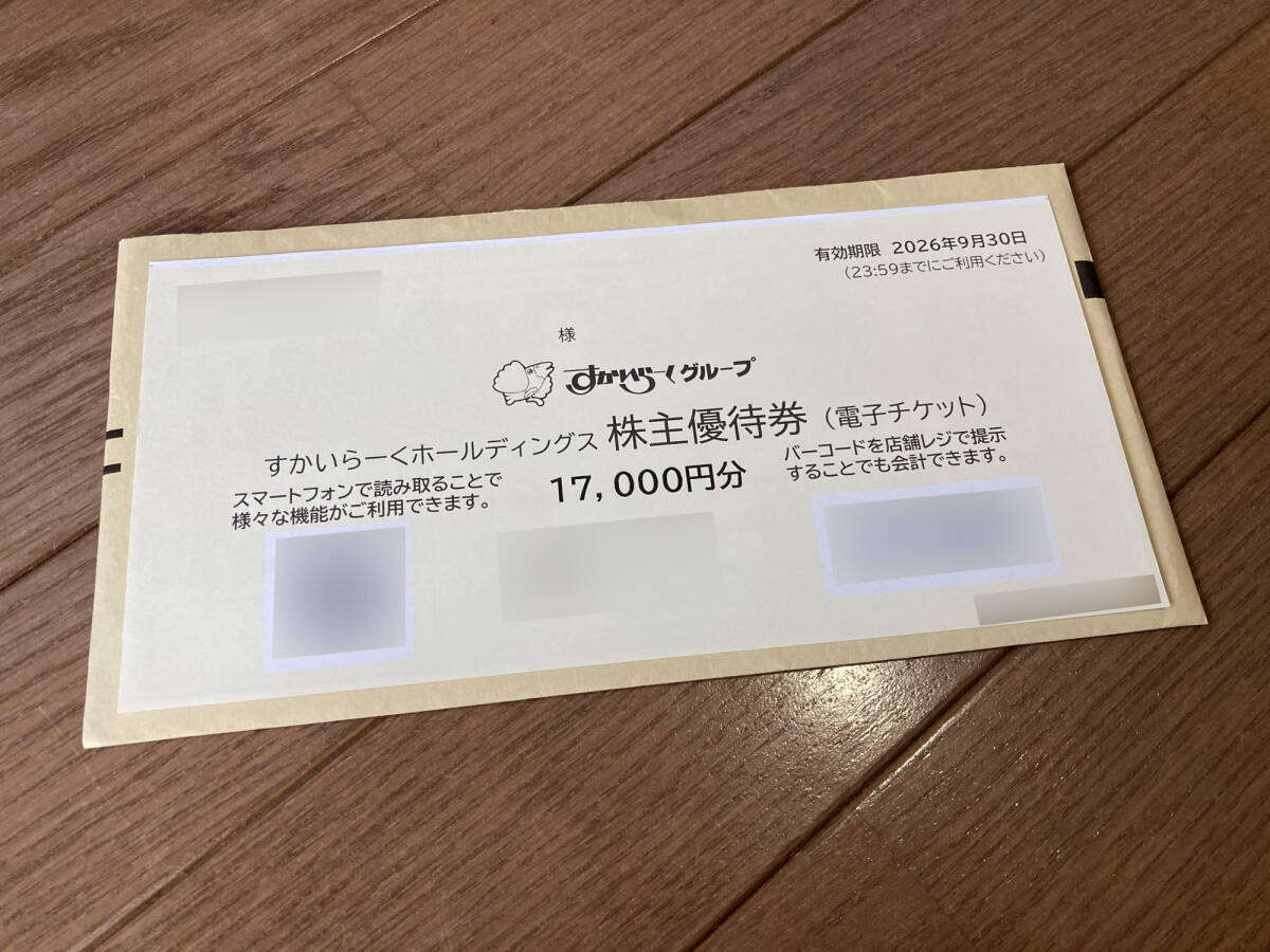 最新★すかいらーく 株主優待17000円分★2026年9月30日期限★コード通知