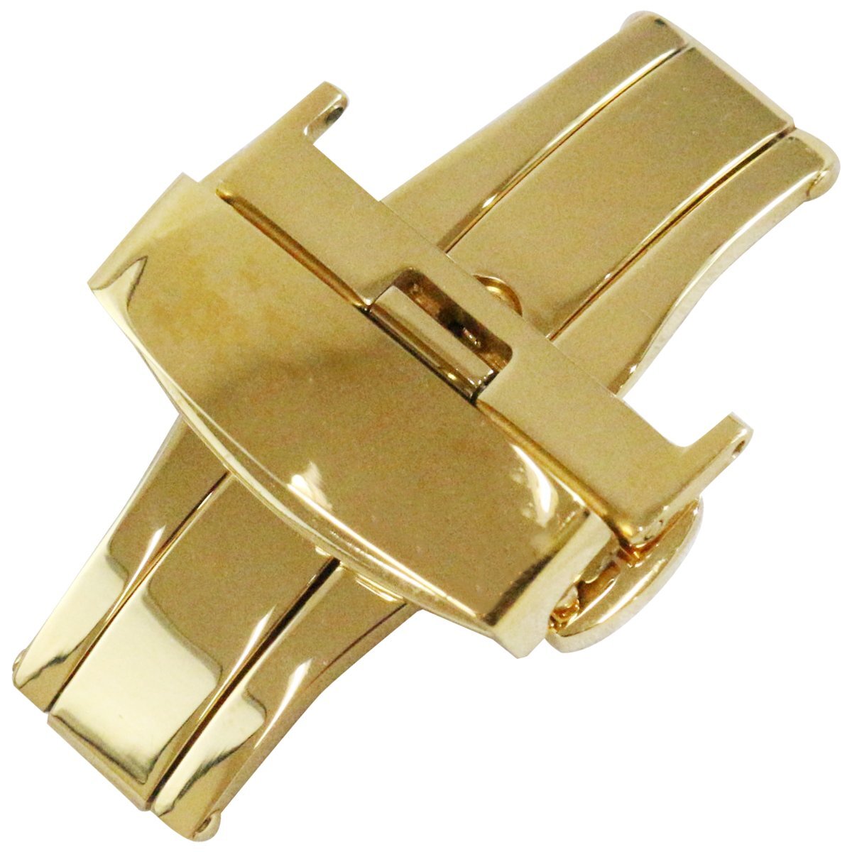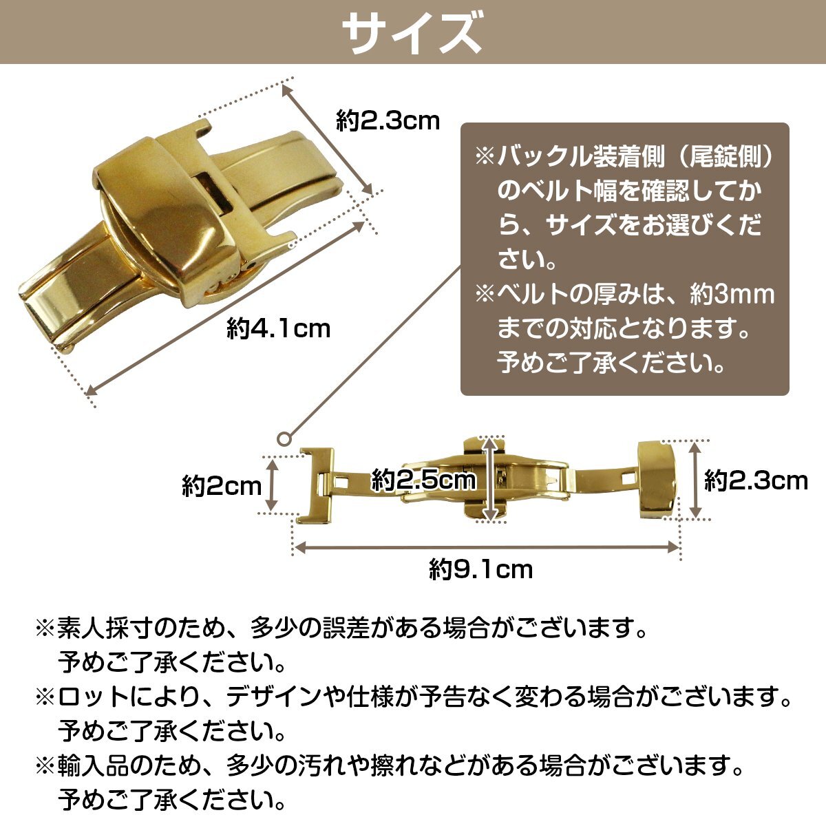【送料無料】『20mm』プッシュ式 Dバックル ゴールド/金 バネ棒/バネ棒外し 両開き 観音開き 腕時計ベルト 時計バンド 留め具 尾錠 交換用