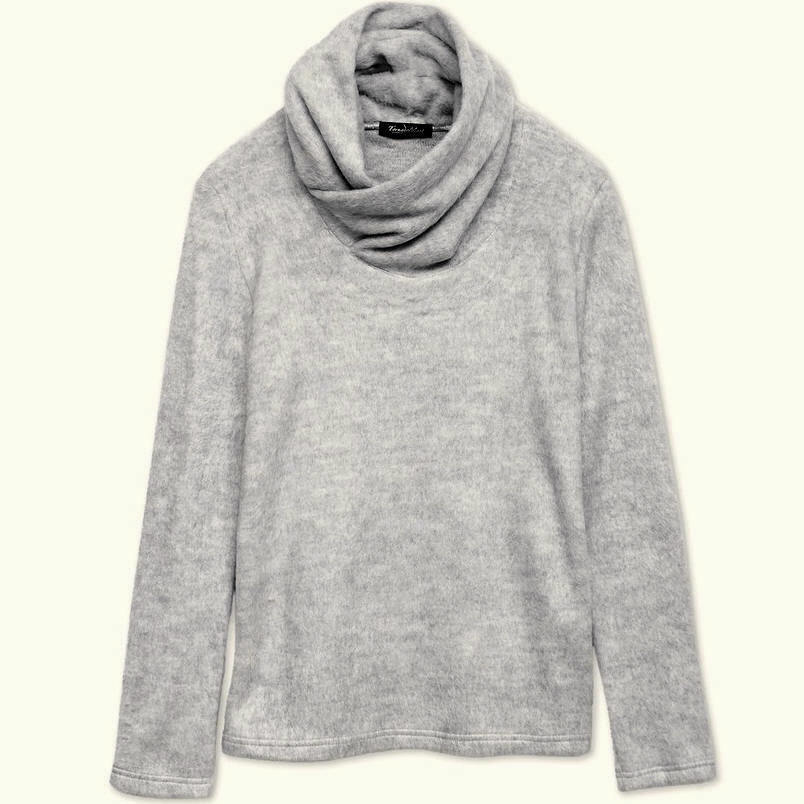 ■タートルネックの衿をドレープ感のあるデザインにしているので、アウターとのコーディネートで衿元にボリューム感とポイントを作れます