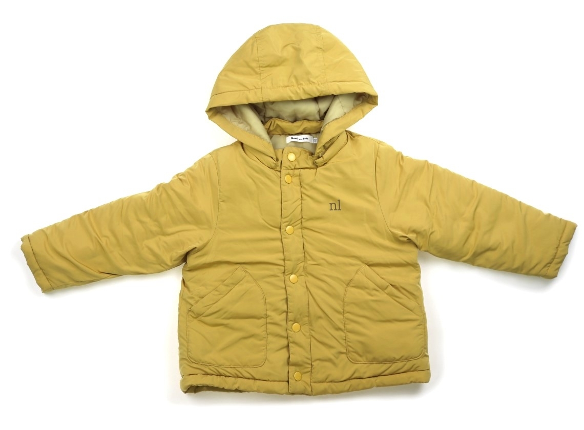 表地・裏地・中綿すべてポリエステル素材です。フードの取り外しが可能です。あまり使用感のない良品です。
