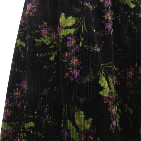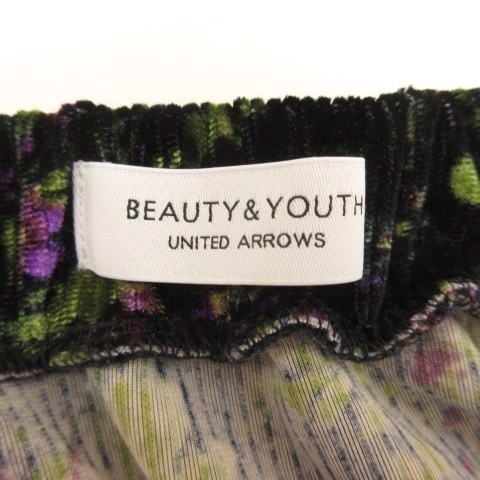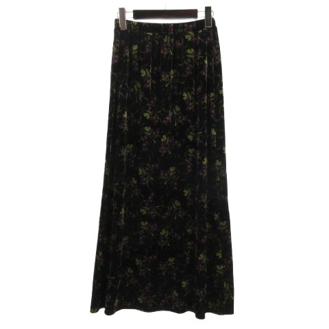 B&Y ユナイテッドアローズ BEAUTY&YOUTH ビューティー&ユース ベロア プリント マキシ スカート 花柄 ブラック パープル系 251209E ■GY43 レディース