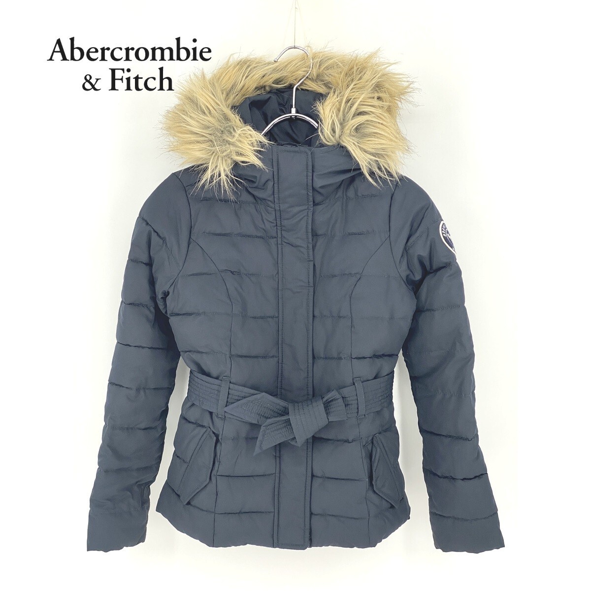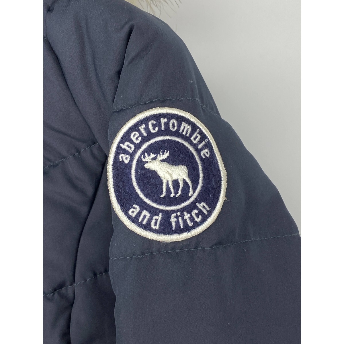 B0686/美品 Abercrombie&Fitch アバクロ フード着脱可 ジップアップ ロゴワッペン パーカー ブルゾン ジャケット S 紺 キッズ レディース