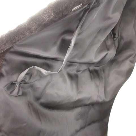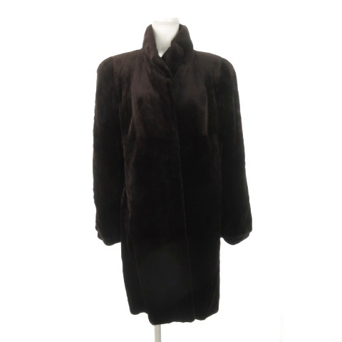 ノーブランド ファーコート シェアードミンク 毛皮 ロング スタンドカラー F 茶 ダークブラウン /AH19 ■GY18 レディース