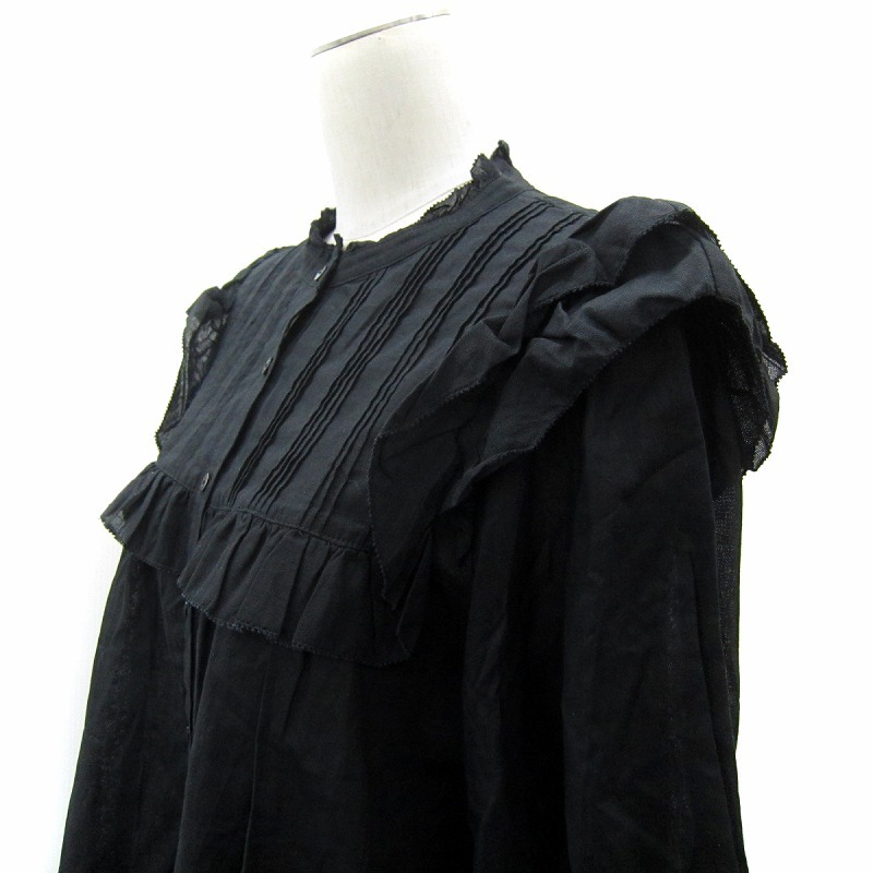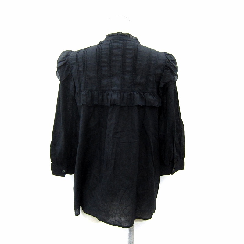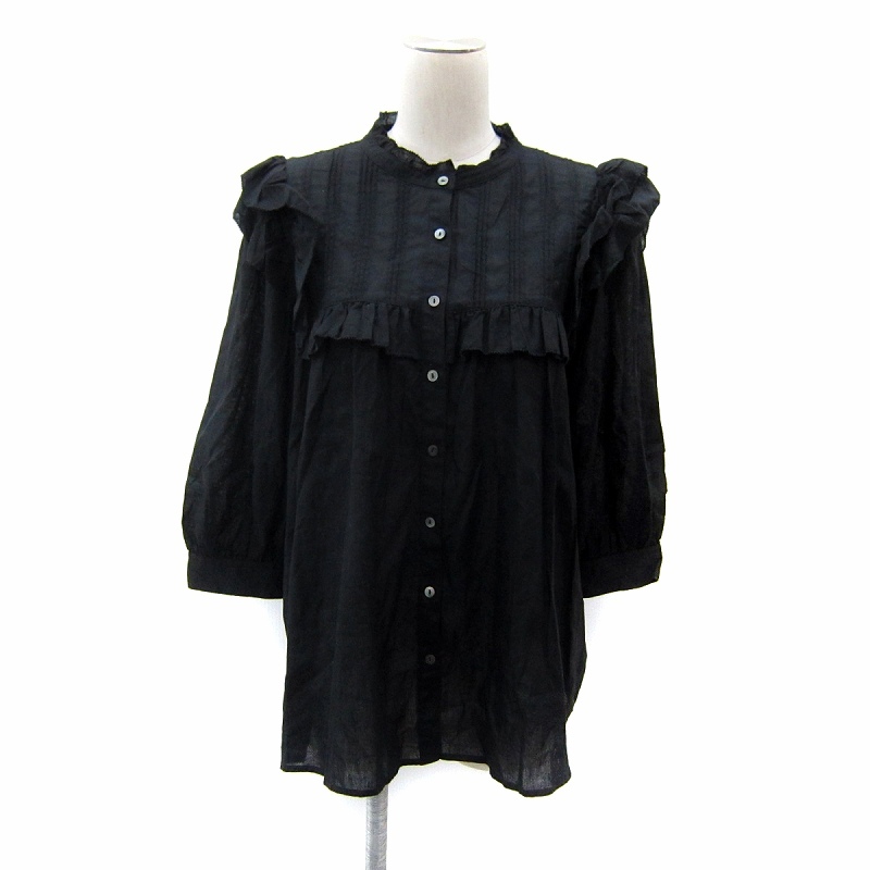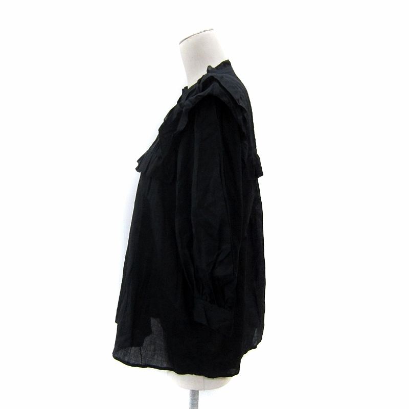 スローブ イエナ SLOBE IENA 25SS リネン混フリルブラウス シャツ 七分袖 無地 麻 黒 ブラック /SY19 ■GY19 レディース