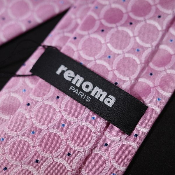 | renoma PARIS レノマ メンズ 日本製 シルク絹100%ネクタイ です。 23歳の若者は、デビューからその異彩を放った。 renomaを産んだ、モーリス・レノマ氏である。1963年、兄ミッシェルとともにパリ16区Rue de la POMPEに最初のブティックをオープン。メンズファッションの概念を一新するブランドの歴史が始まろうとしていた。パリの“WHITE HOUSE”。 名門ジャンソン・ドゥ・サイ高校前にあるブティックは、白い外壁からそう呼ばれた。自分たちのための服を仕立て、それを着て遊びに行くという、いわゆるリアル・クローズド的発想が、裕福でワルな学生たちの心に火をつけ、一躍人気となる。『プチ・ブルジョア的洒落た服が揃う店』という新しい本格的メンズ・プレタポルテとしての評価を得て、パリの学生から、やがてファッション界のスターまで一気に広がる。 プレゼント大変喜ばれるお品です。
