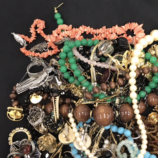 | 1円 パール調 / カラーストーン 他 ネックレス ブローチ 等 イミテ 含 アクセサリー 総重量約1.9kg まとめ A22790 |
