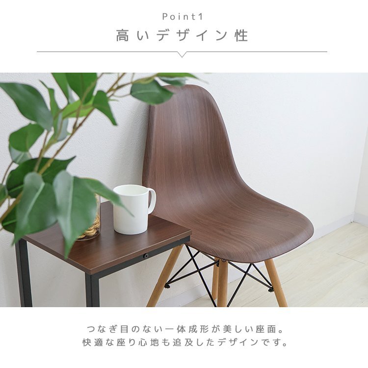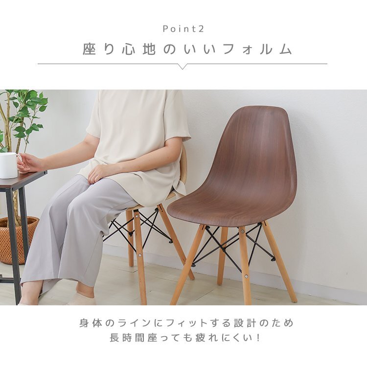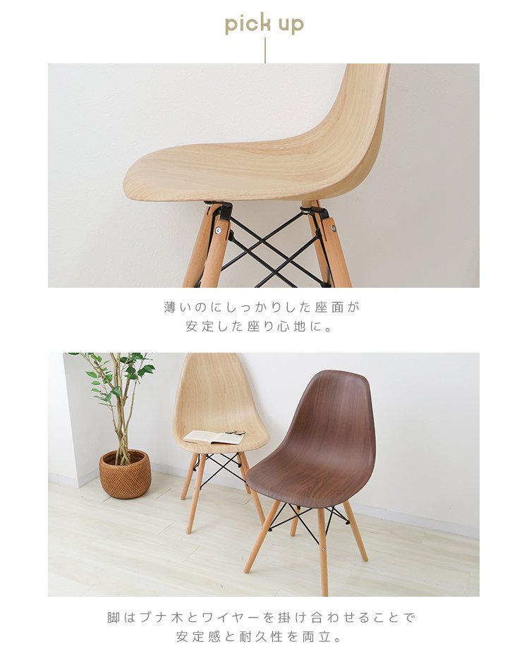 時代を問わない洗練されたデザイナーズチェア。 20世紀を代表するプロダクトデザイナー・チャールズ&レイ・イームズ夫妻の最高傑作のひとつとして名高い 「イームズ シェルチェア DSW」のリプロダクト製品です。 ■「置くだけで絵になる」デザイン性&快適な座り心地 背板と座板が一体型の形状となった、なめらかで美しいシェル型デザイン。 柔らかなフォルムの座面が体にフィットし、長時間座っていても疲れにくい快適な座り心地です。 さらに、デザイン性のあるワイヤーが洗練された佇まいを演出します。 \細部にもこだわり/ ■耐荷重は約120kg。スチールパーツで高い耐久性を実現。 ■膝裏が痛くなりにくいよう内側に沿ったデザインに。 ■脚部先端には保護パーツ付きで床の傷防止。 シチュエーションを選ばず、空間になじむオールマイティなデザイン。 ダイニングチェア、オフィスチェアやリビングチェア、デスクチェアなどマルチに活躍します。 【商品仕様】 ・カラー:ナチュラルウッド ・サイズ:(約)幅45×奥行41×高さ82cm 座面サイズ:(約)幅45×奥行41×高さ42cm 座面厚み:(約)14cm ・重量:(約)3.4kg ・耐荷重:(約)120kg ・材質:シート:ポリプロピレン樹脂/フレーム:スチール/脚部:スチールワイヤ、ブナ木材 【注意事項】 ・1ヶ所を先に締めすぎるとグラつきやネジ穴がズレる原因になります。 ネジを締めるときは、必ず最初に4ヶ所をゆるく仮留めしてください。 その後、全体のバランスをとりながら徐々に固定していくとグラつきのないキレイな設置ができます。 ・組立て後、脚にガタツキが生じた場合は通常使用している間に馴染んでいきますので、ご安心下さい。 ・座面に擦れのような箇所がある場合や脚部分に細かな錆が出ている場合がございますが それらによる返品・交換はお受けいたしかねます。予めご了承ください。 ・商品はリプロダクト品となります。 |