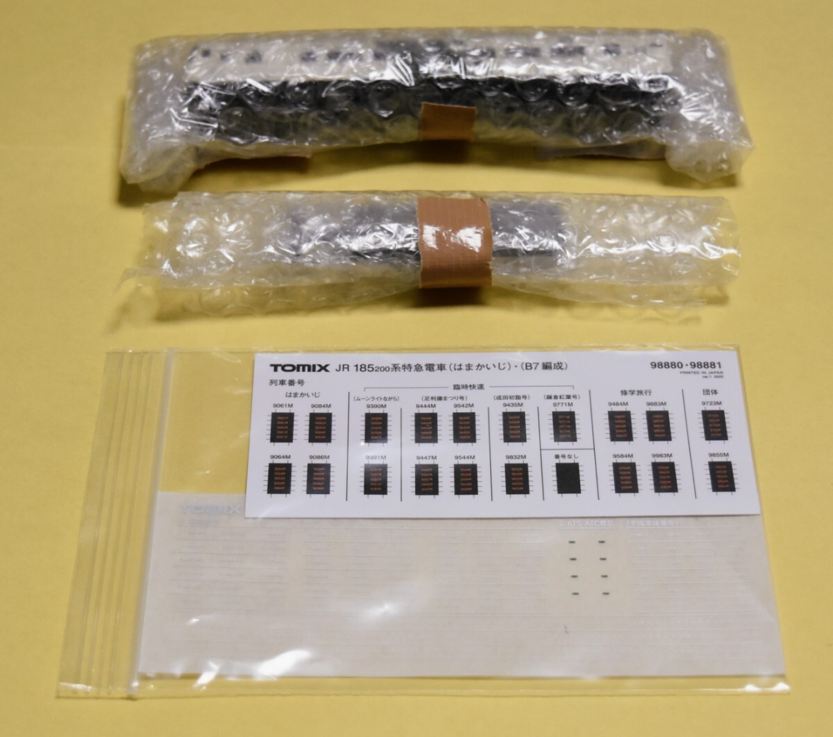 〜こちらの商品は、2025年に発売したTOMIX 型番(98880) 185系200番台系特急電車(はまかいじ・踊り子色・強化型スカート)セットより【クハ185-200~各種パーツ付(取付治具を含む)~】のバラ売り商品