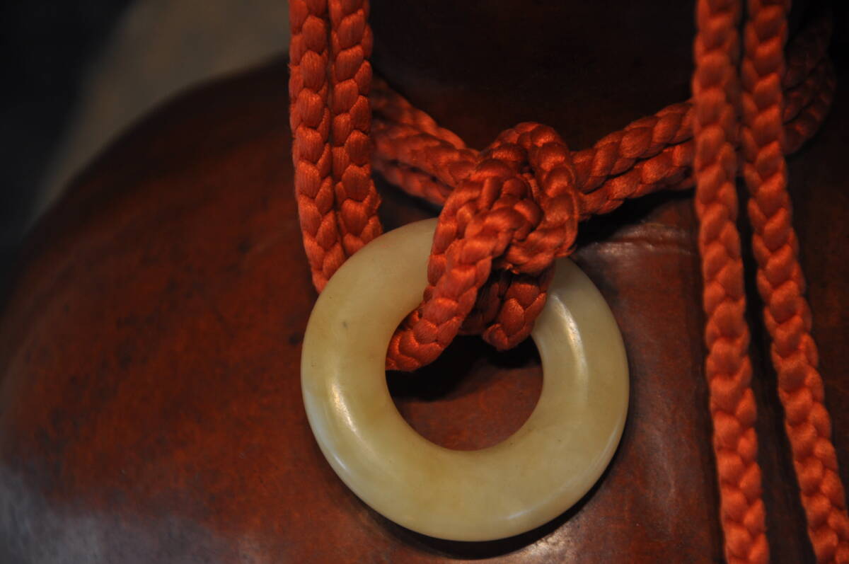 時代物 瓢箪 葫芦 和田黄玉石環提げ物 天然瓢箪 古美術です。