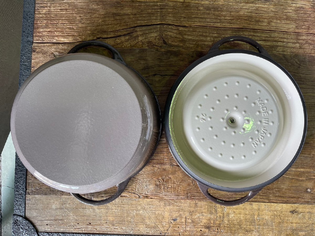 バーミキュラ オーブンポットラウンド 26cm 無水 ホーロー鍋 専用レシピブック付 ブラウン BRN26R 未使用箱痛み品の出品となります。状態は未使用ですが箱に痛みが見受けられます。在庫処分につき超特価の22000円スタートでお願い致します。落札価格に別途消費税がかかります。発送できる付属品等は写真に写っているものですべてとなります。未使用品につき現状渡し、ノークレーム・ノーリターンでお願いいたします。よろしくお願いいたします。製品の参考情報: