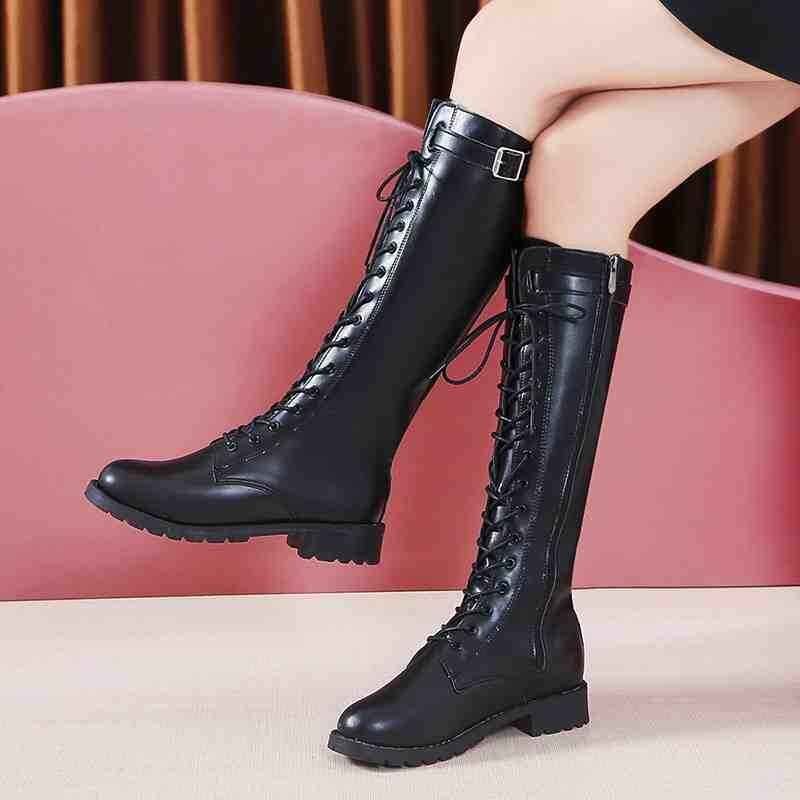 サイドバックルがおしゃれで美脚効果◎レディースロングブーツ
