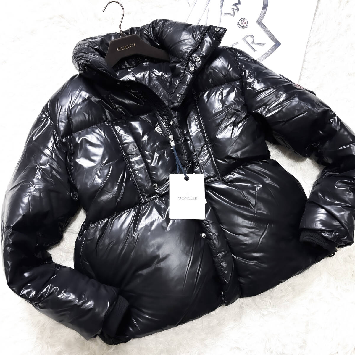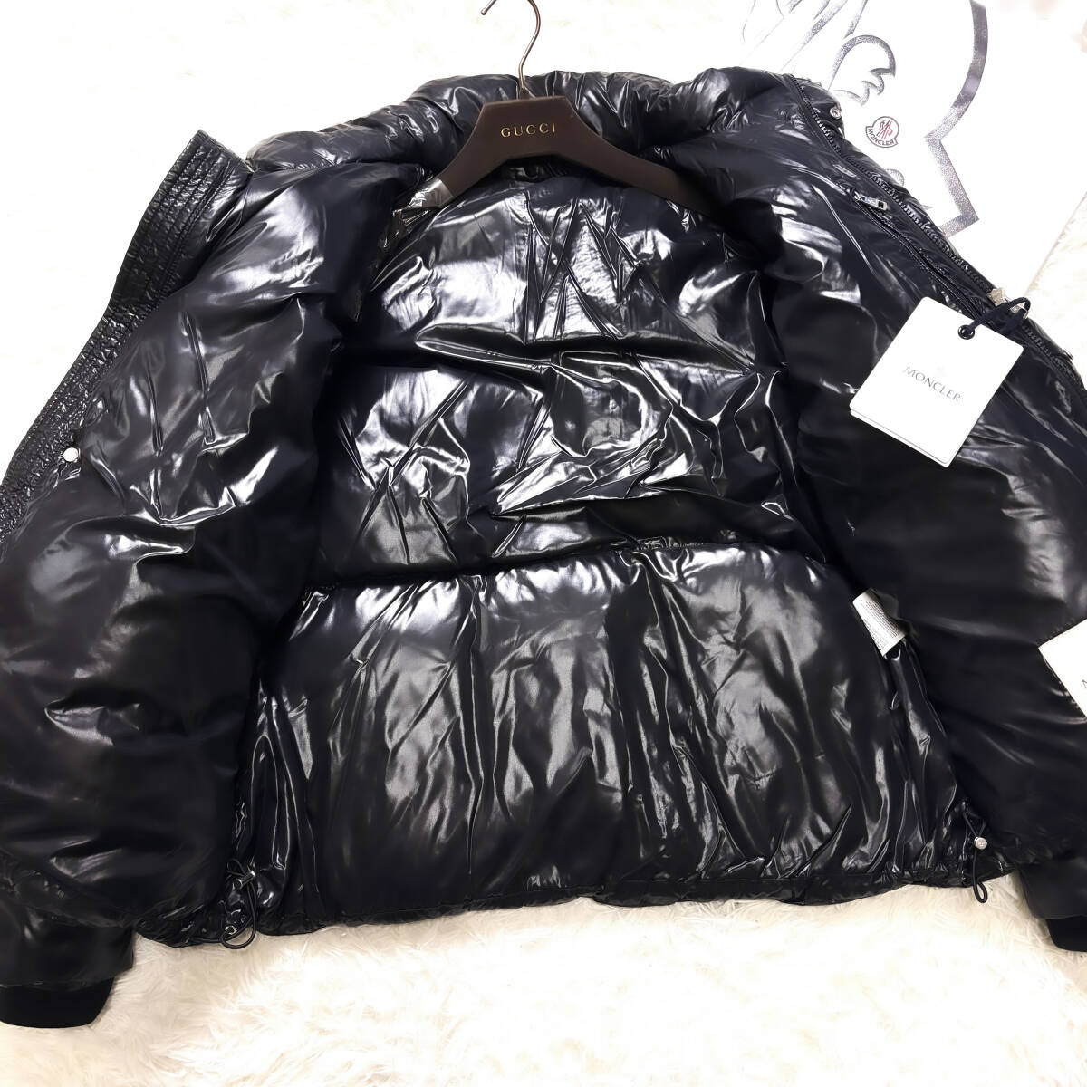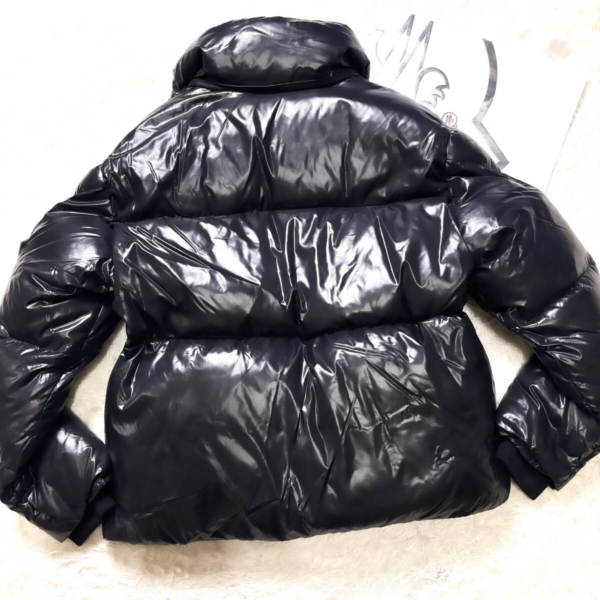 極美品デカロゴMONCLERダウンジャケットDIST認証済み確実正規品L~Mポイント袖ビッグロゴワッペン光沢黒ブラック1大きいサイズ モンクレール