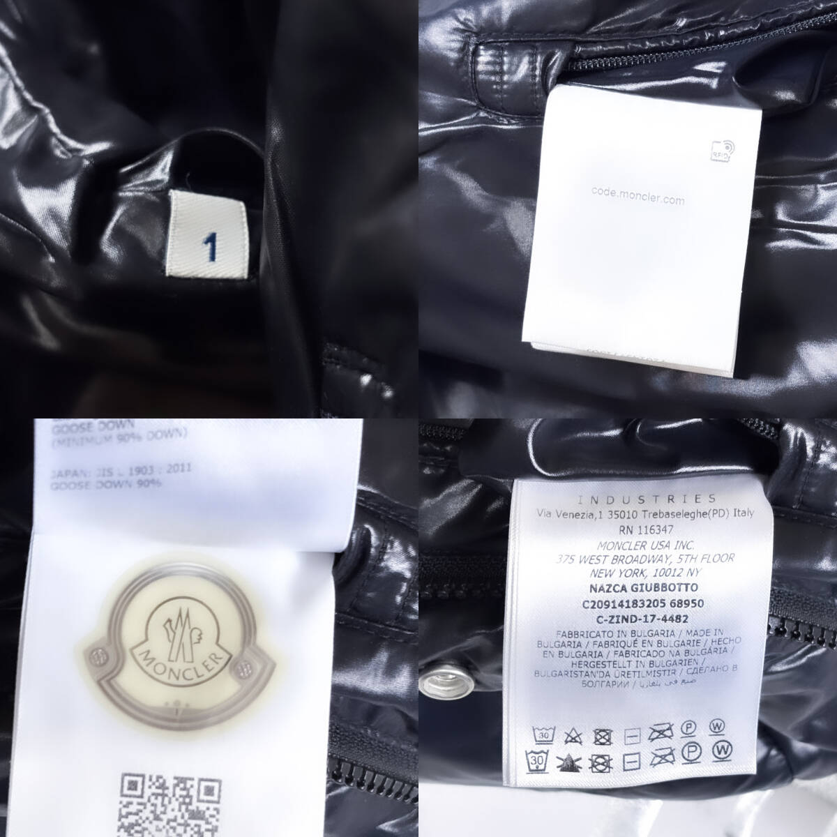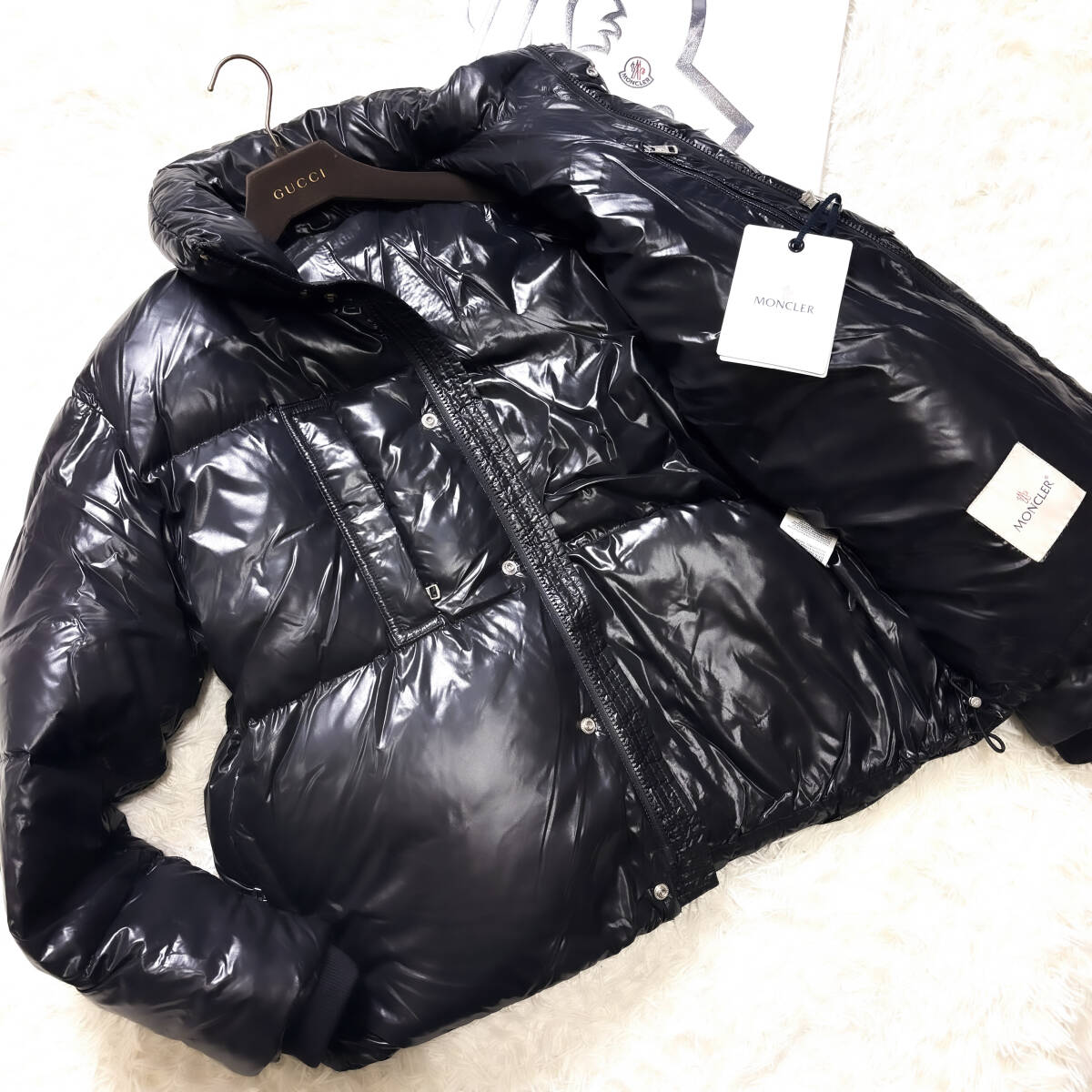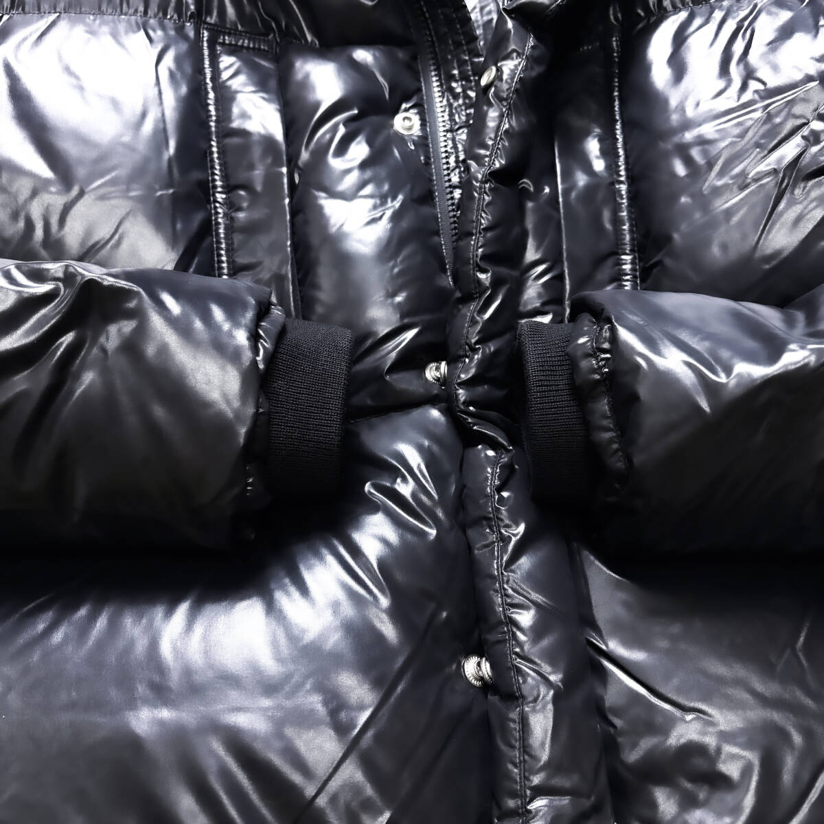 極美品デカロゴMONCLERダウンジャケットDIST認証済み確実正規品L~Mポイント袖ビッグロゴワッペン光沢黒ブラック1大きいサイズ モンクレール