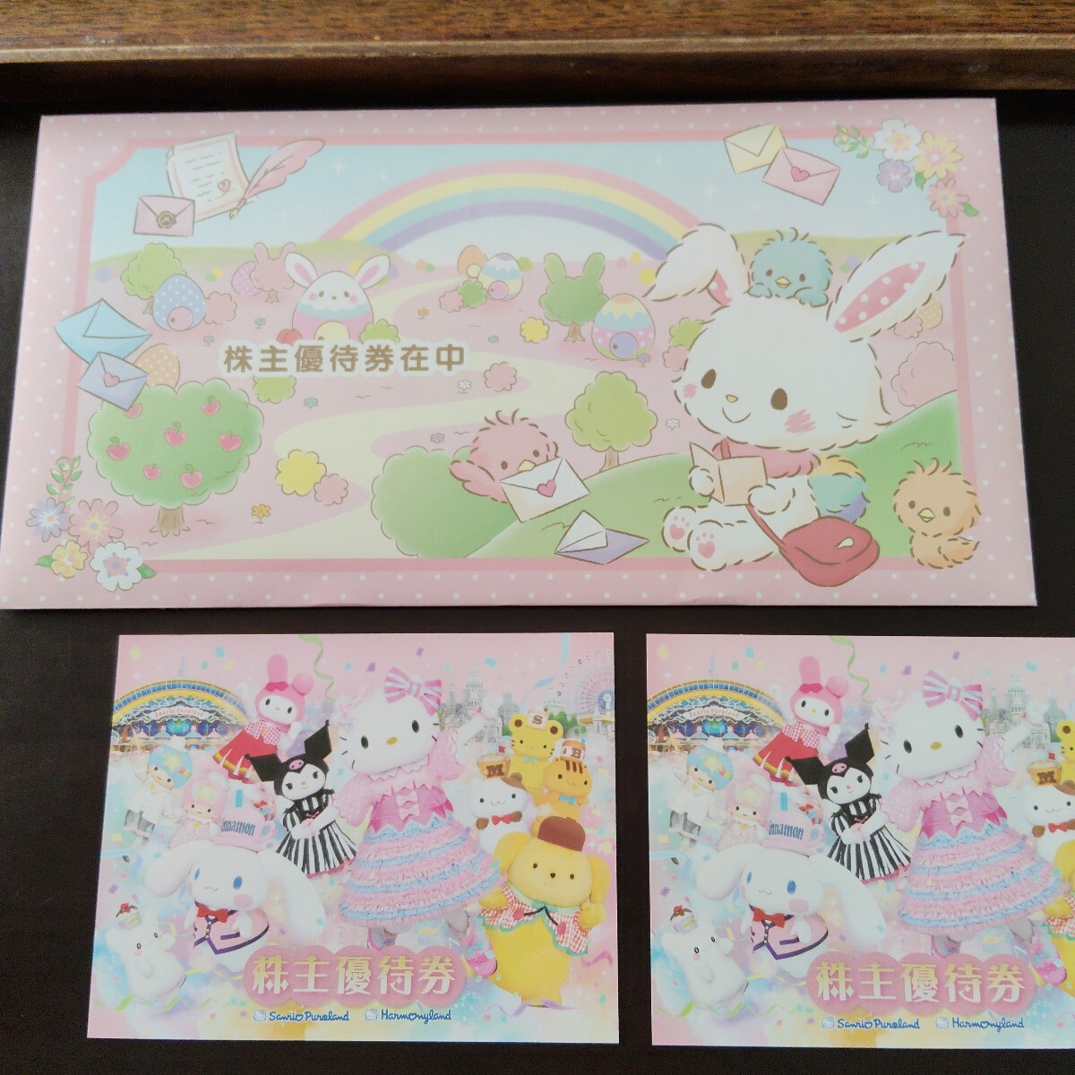 サンリオの株主優待券2枚です。サンリオピューロランド等で利用できます。有効期限は2026年8月31日です。