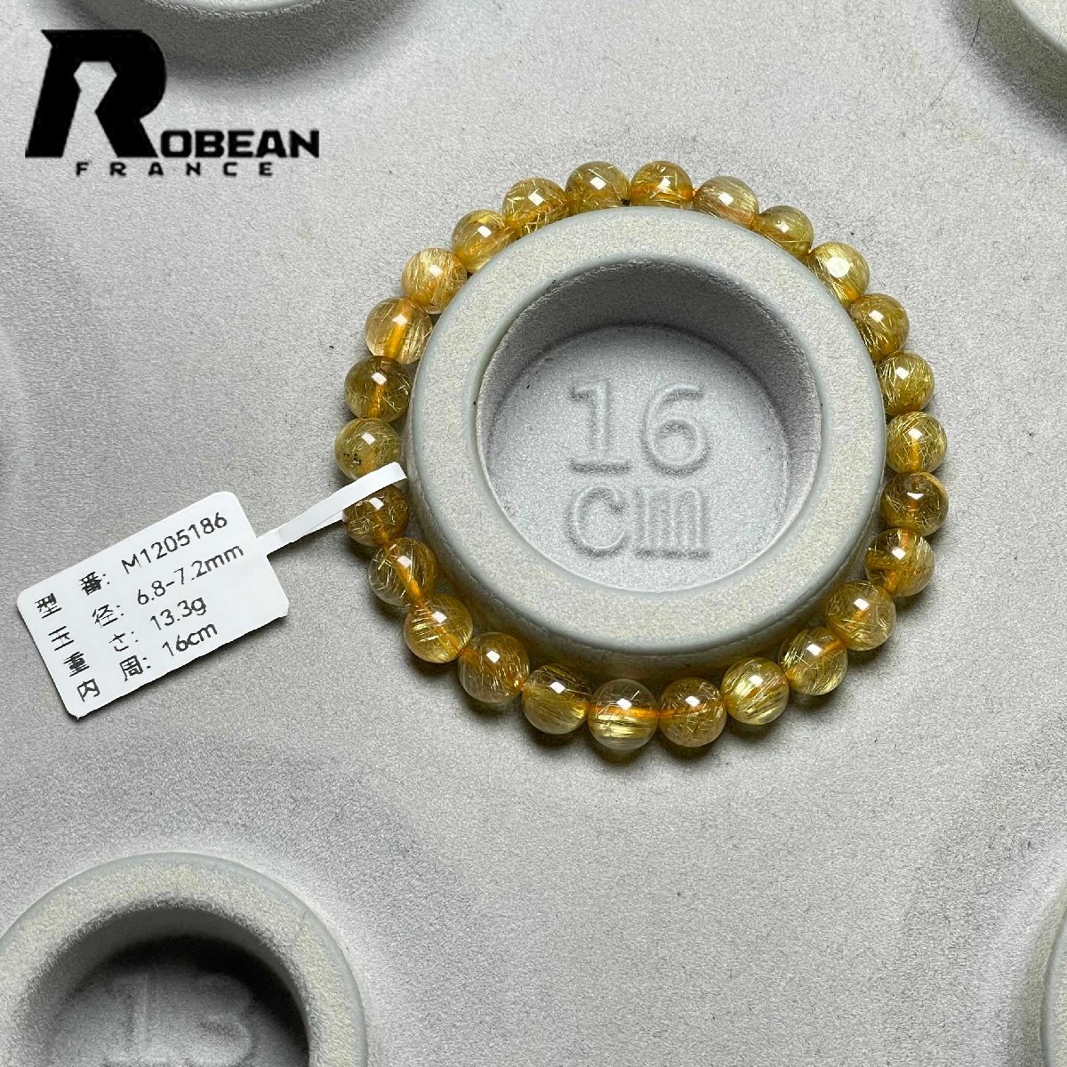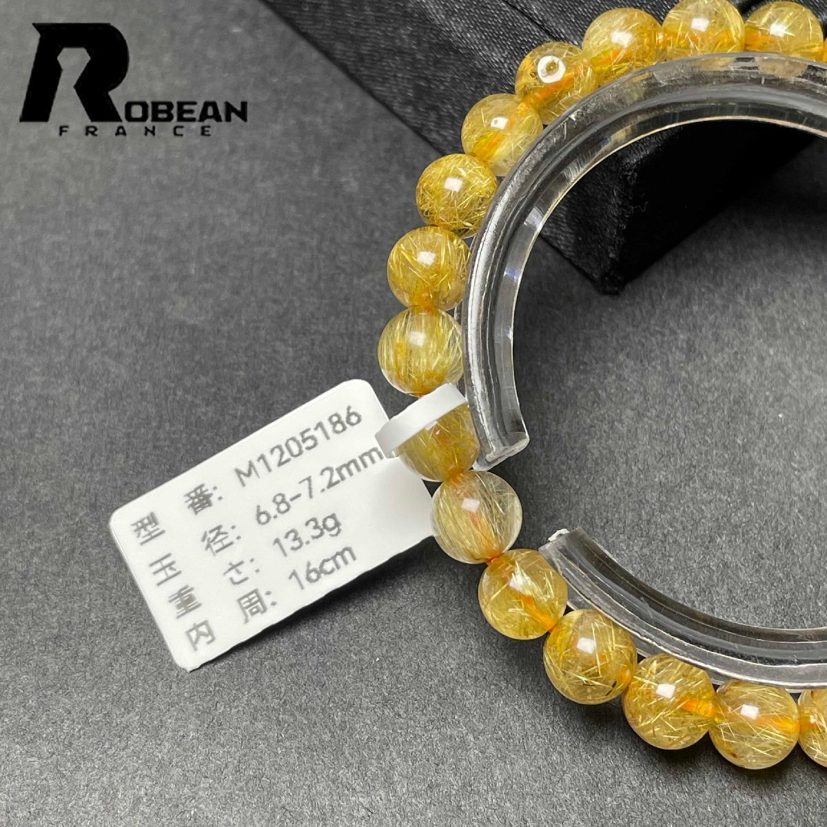【一点限り】EU製 定価7万円★ROBEAN・極!極満針ルチルクォーツ★ブレスレット パワーストーン 天然石 金運 お守り 6.8-7.2mm M1205186
