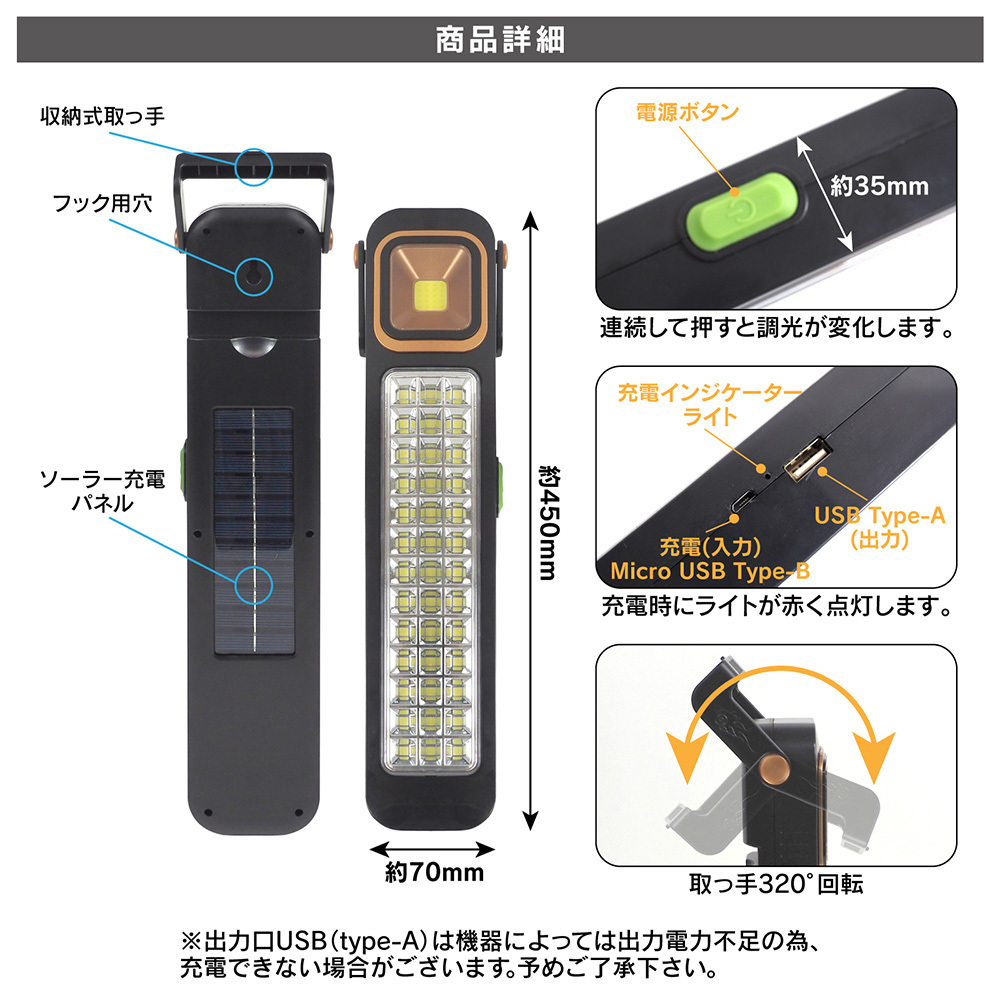 ■充電方式:ソーラーパネル/USB(Micro USB Type-B)