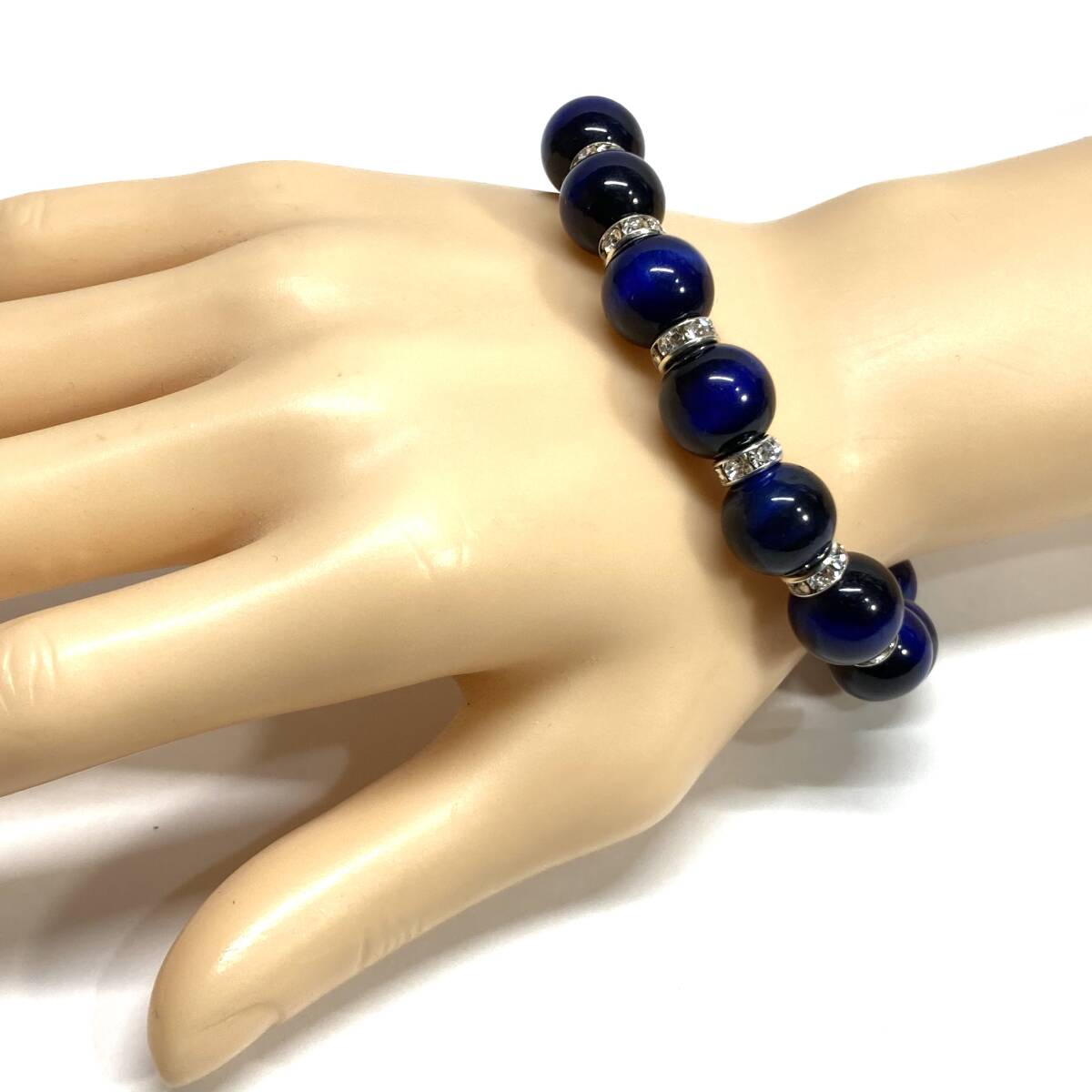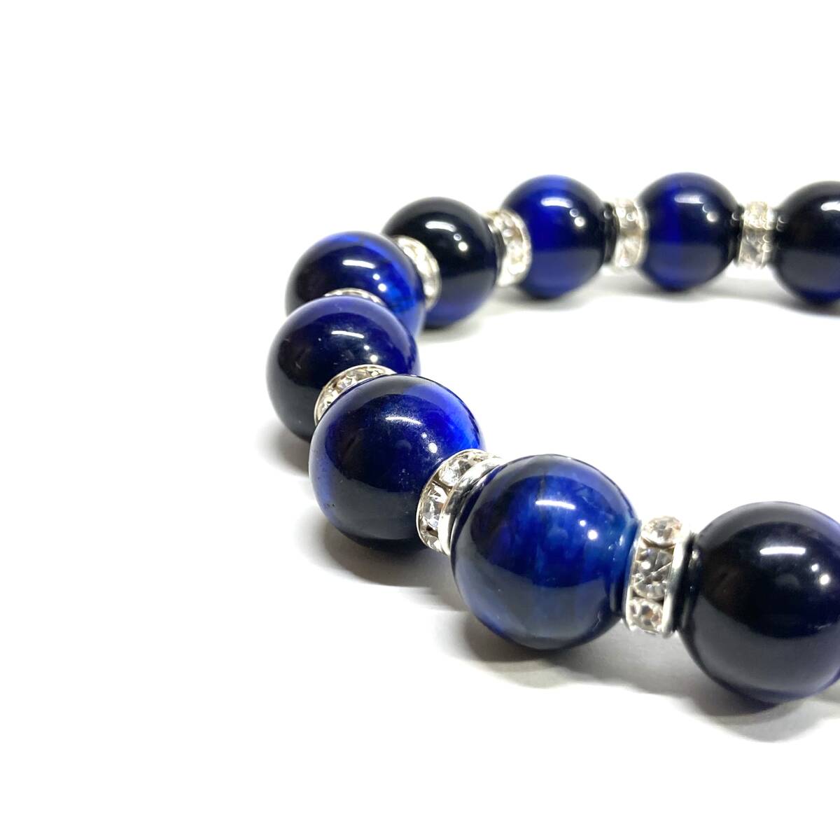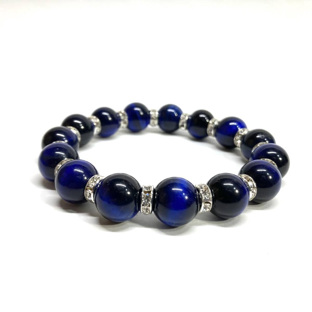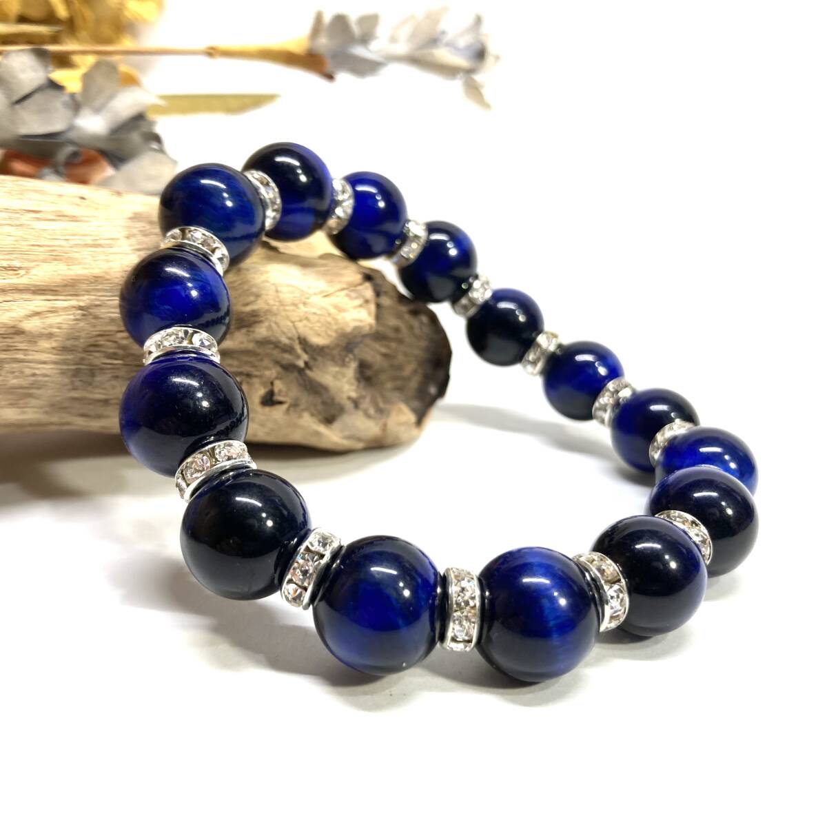 こちらは、12mm玉のブルータイガーアイを使用したブレスレットです。石との間にはロンデルを挟み高級感を演出しています。シンプルなデザインですのでどんなコーディネートとも合わせ易いブレスレットです。石大きさは12mm玉です。内周約18cmです。(サイズ変更の場合は取引ナビにてご連絡をお願いします。) 数に限りがございますので気になる方はお早めにどうぞ。