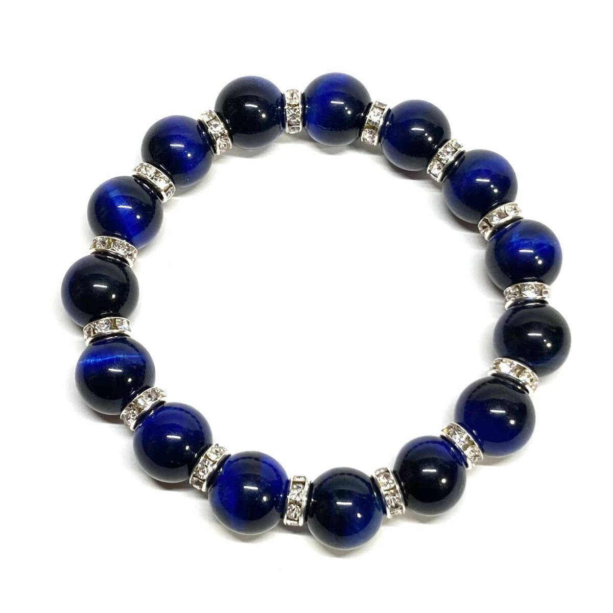 ブルータイガーアイ パワーストーン ブレスレット (ロンデル:シルバー) 12mm メンズ・レディース