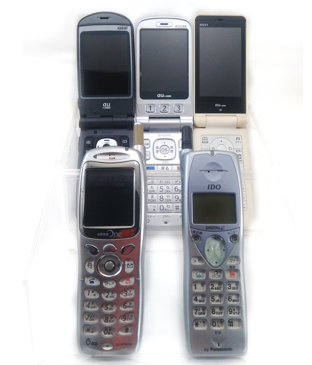 ★動作品4台+1★【IDO au携帯電話まとめて】ガラケー平成 ガラパゴス ケータイ当時物 中古 ACアダプター充電器付き A5516T.A5528Kほか