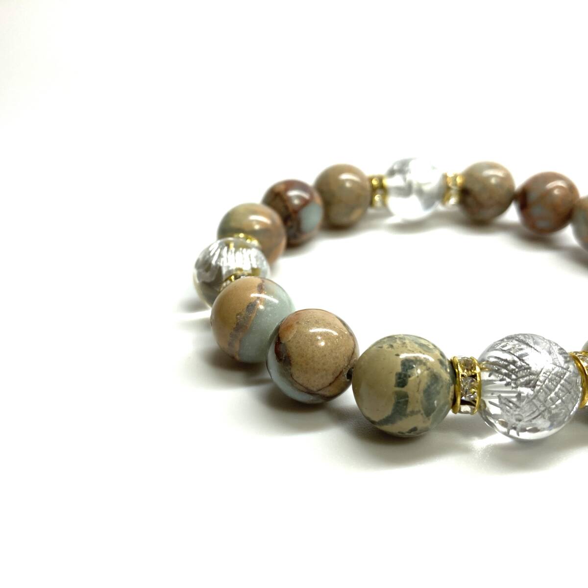 四神獣銀彫水晶×インプレッションストーン 12mm パワーストーン ブレスレット天然石 青龍 白虎 玄武 朱雀 運気上昇 お守り 四神相応 G
