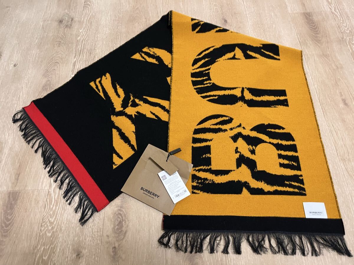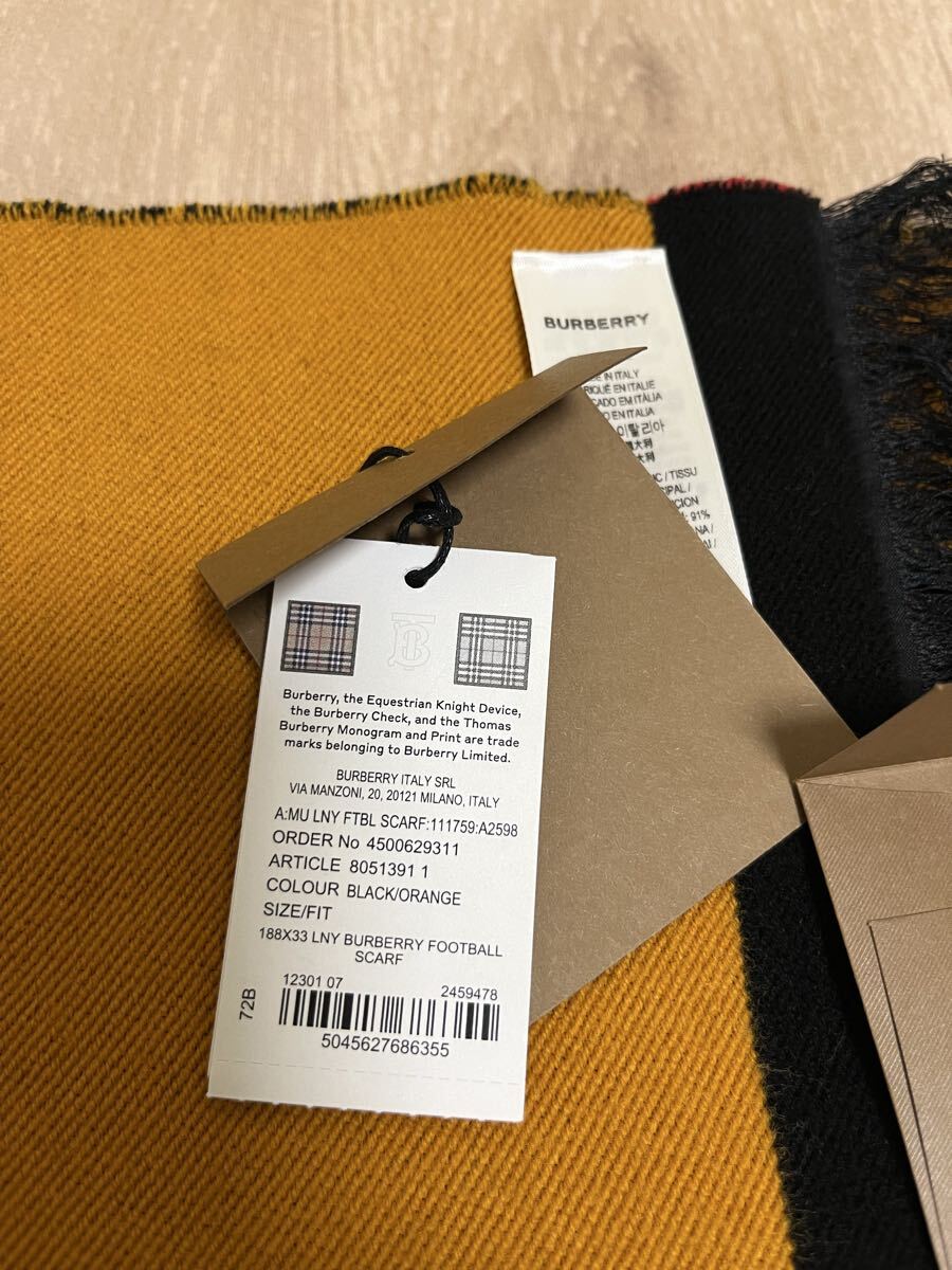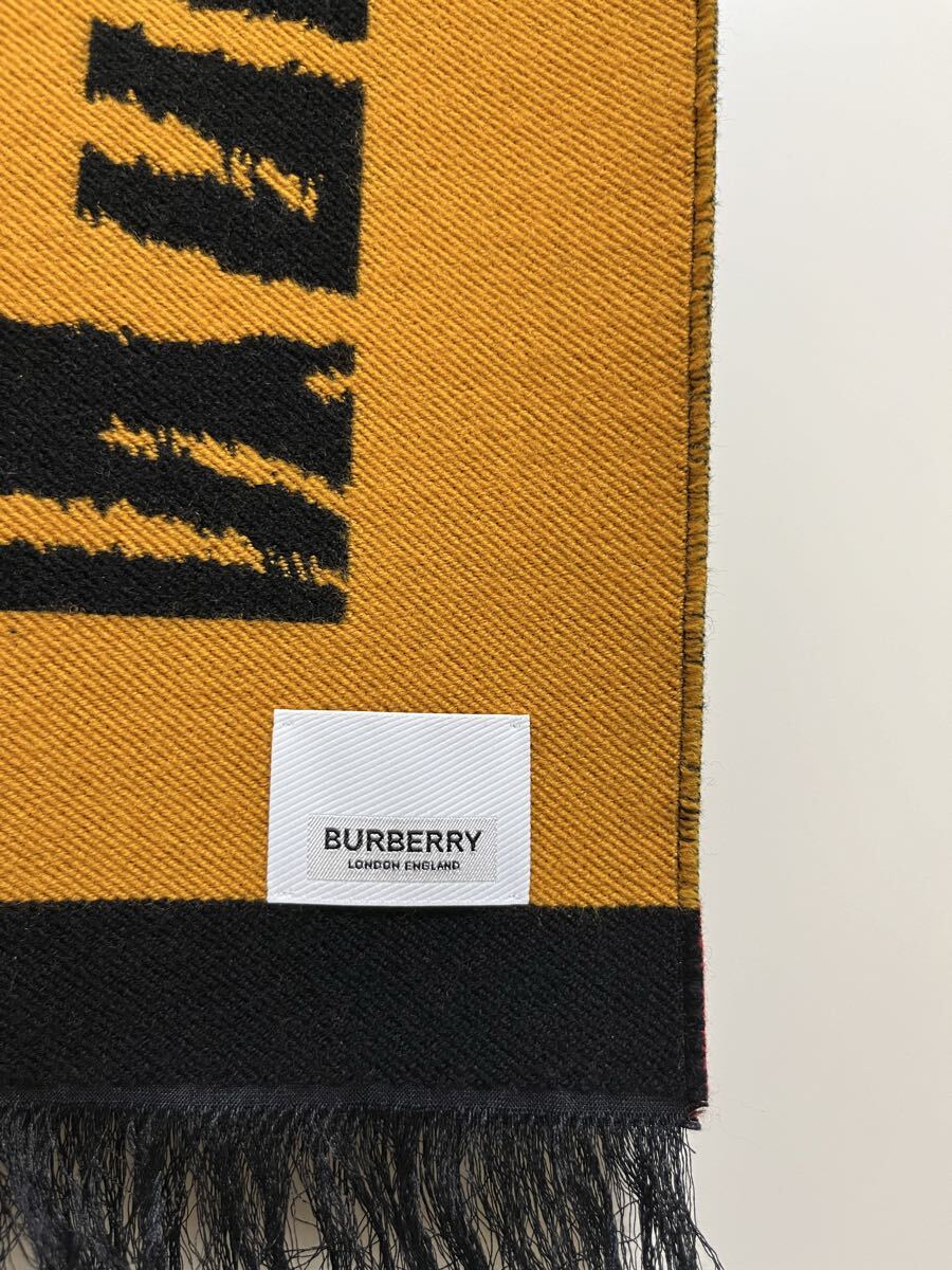 バーバリー ウール91% シルク9% マフラー リバーシブル ブラック/オレンジ