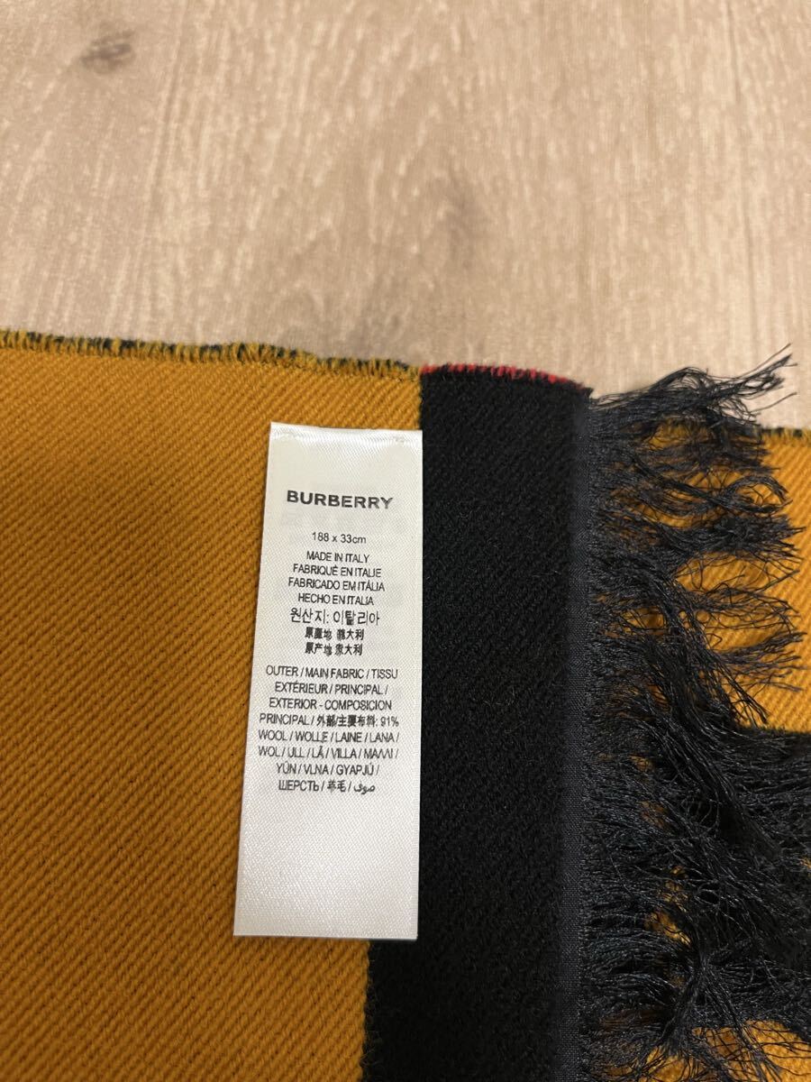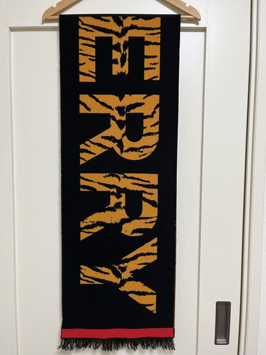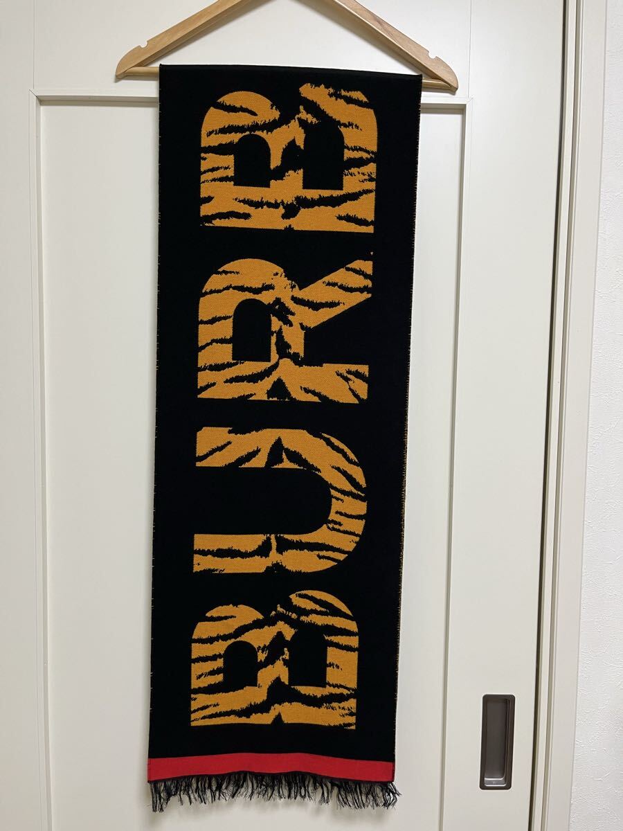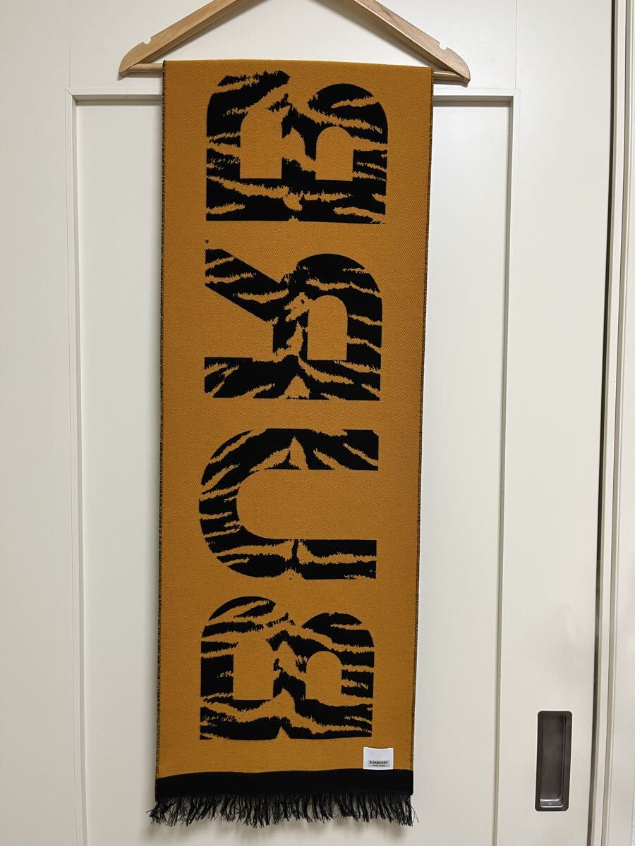 バーバリー ウール91% シルク9% マフラー リバーシブル ブラック/オレンジ